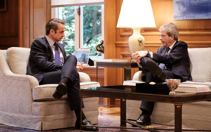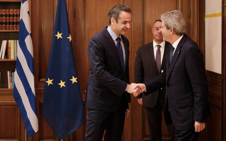 Με τον Επίτροπο της ΕΕ, αρμόδιο για θέματα Οικονομίας, Πάολο Τζεντιλόνι συναντήθηκε στο Μέγαρο Μαξίμου ο πρωθυπουργός Κυριάκος Μητσοτάκης.