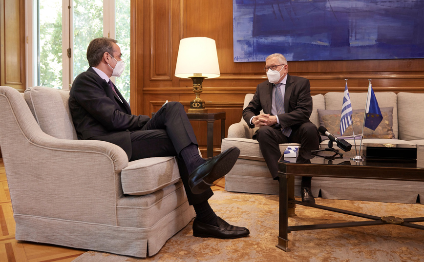 Ο πρωθυπουργός Κυριάκος Μητσοτάκης συναντήθηκε το πρωί στο Μέγαρο Μαξίμου με τον επικεφαλής του Ευρωπαϊκού Μηχανισμού Σταθερότητας (ΕSM), Kλάους Ρέγκλινγκ.