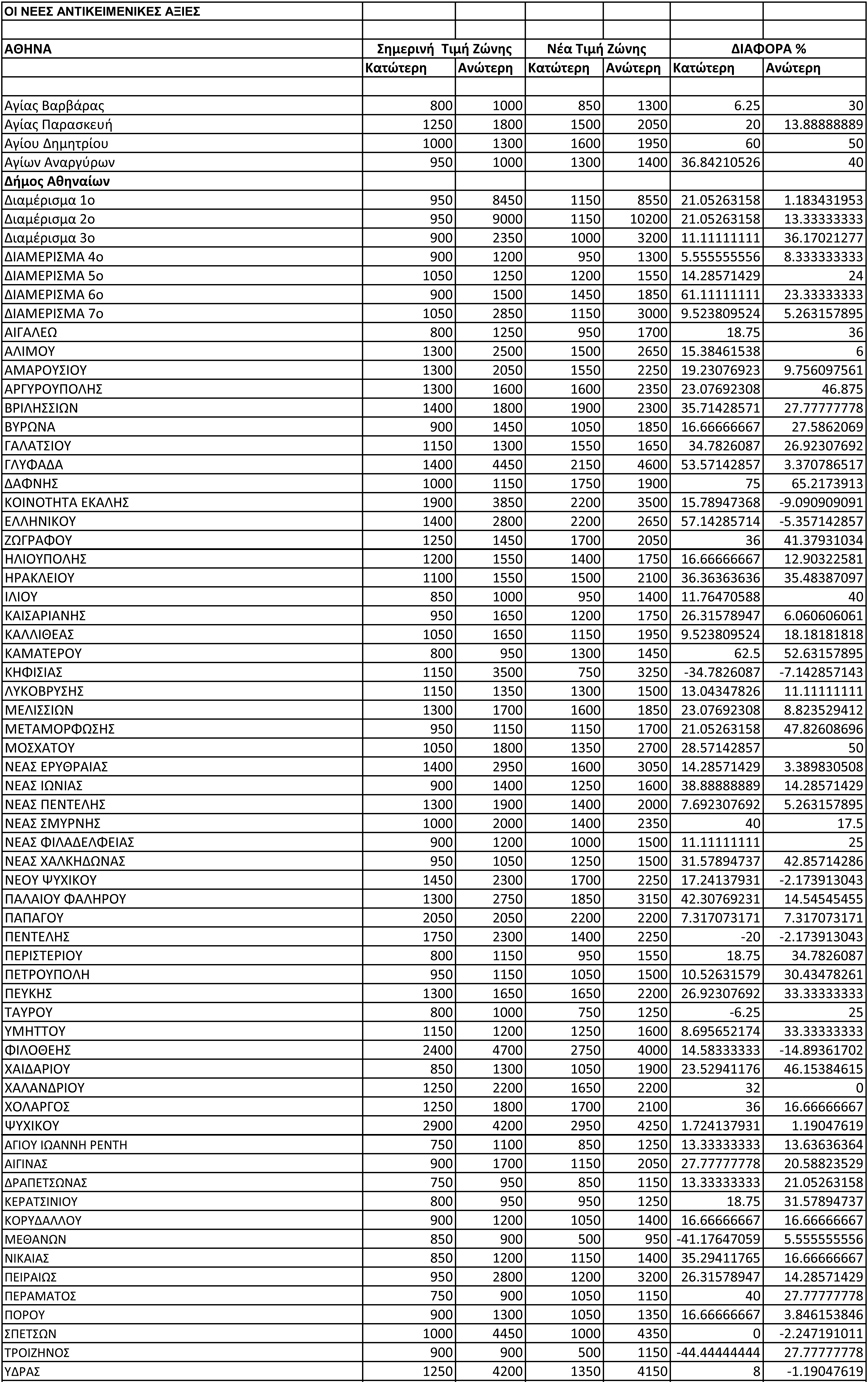 Αντικειμενικές αξίες: Οι τιμές στην Αθήνα