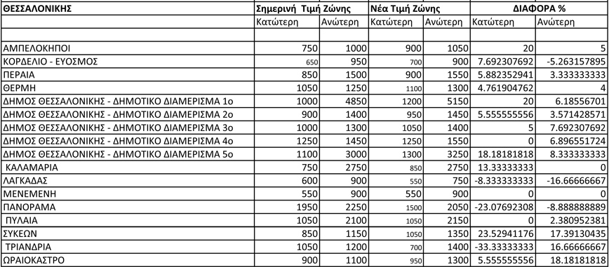 - Σε 3.314 περιοχές ή το 24% του συνόλου οι αξίες παρέμειναν αμετάβλητες.