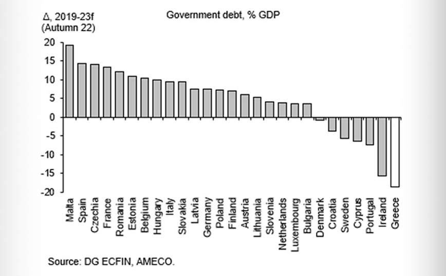 «Σύμφωνα με την επίσημη πρόβλεψη της Ευρωπαϊκής Επιτροπής, η Ελλάδα προβλέπεται να έχει τη μεγαλύτερη μείωση του χρέους προς το ΑΕΠ από το 2019 στην ΕΕ» επεσήμανε σε ανάρτησή του στο Τwitter την Τρίτη (22/11) ο πρωθυπουργός Κυριάκος Μητσοτάκης.