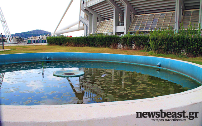 Βρωμιές, σκουριές και στο βάθος βρώμικα σιντριβάνια. Εστίες μόλυνσης για οποιονδήποτε κάνει το λάθος να πει ότι θα τα πλησιάσει. Αυτή είναι η σημερινή εικόνα του ΟΑΚΑ.