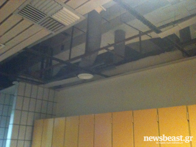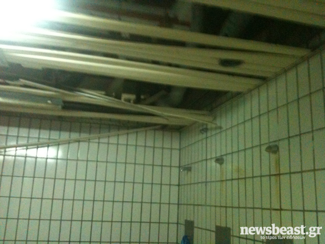 Ντουζιέρες και αποδυτήρια άκρως εγκαταλελειμμένα υπάρχουν στις αθλητικές εγκαταστάσεις του ΟΑΚΑ. Όπως βλέπετε από τις φωτογραφίες που δημοσιεύει σήμερα το newsbeast.gr στα αποδυτήρια και τις ντουζιέρες του κλειστού κολυμβητηρίου, το ταβάνι έχει… πέσει.