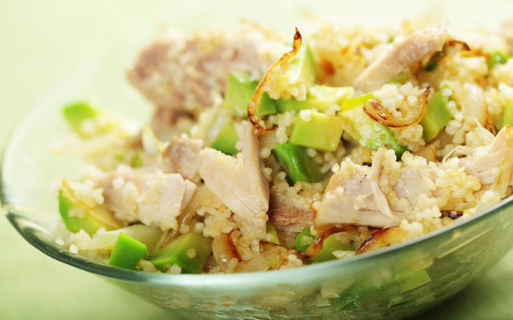- 2 φιλέτα κοτόπουλο βρασμένα και κομμένα σε κομμάτια