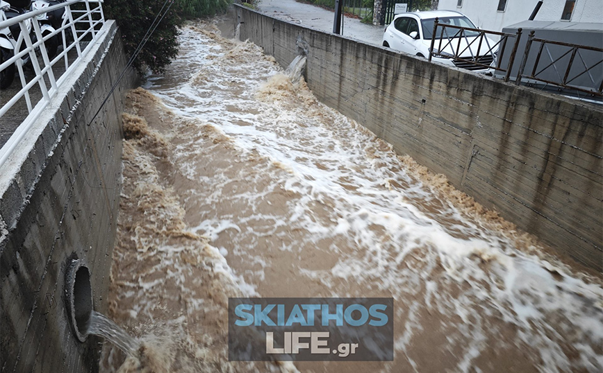 Δραματική είναι η κατάσταση στη Σκιάθο, η οποία πλήττεται από την κακοκαιρία Daniel. Τα έντονα πλημμυρικά φαινόμενα σημειώθηκαν από την Τζανεριά μέχρι τις Κουκουναριές. Ενδεικτικό της δύσκολης κατάστασης είναι πως εγκλωβίστηκαν οδηγοί στα αυτοκίνητά τους.