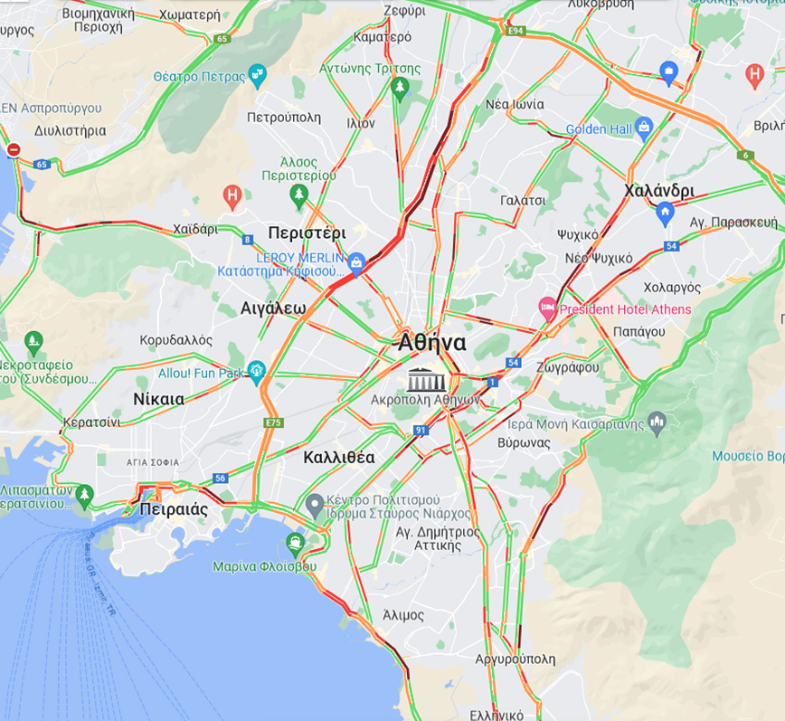 Σύμφωνα με την Τροχαία Αττικής, η κίνηση αυτή την ώρα είναι αυξημένη στα εξής σημεία: