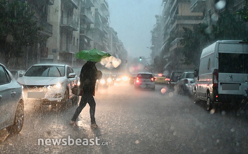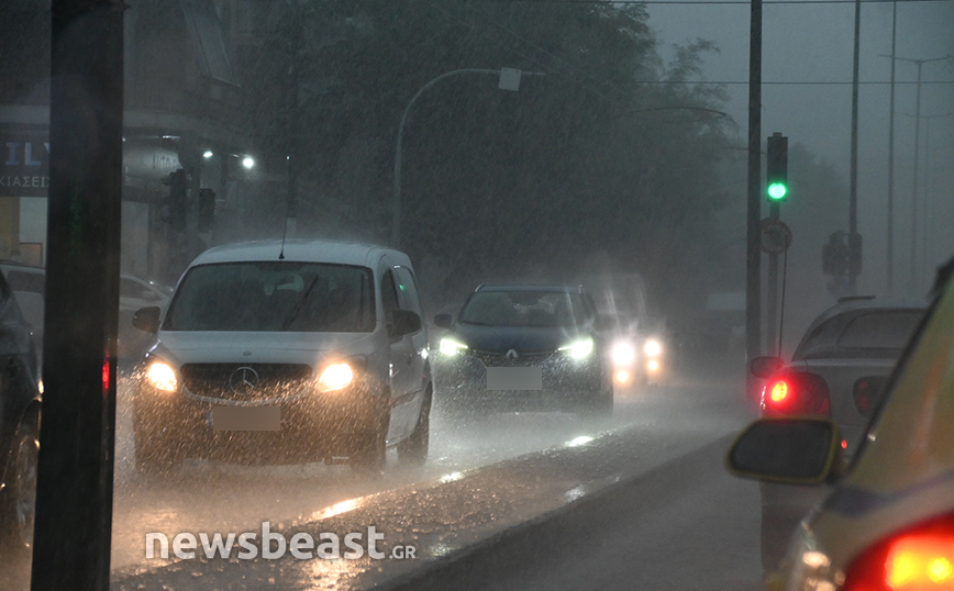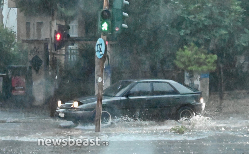 Εικόνες του Newsbeast δείχνουν το τοπίο που επικρατεί και τα προβλήματα που δημιούργησε, καθώς έκλεισαν δρόμοι λόγω της συσσώρευσης υδάτων.