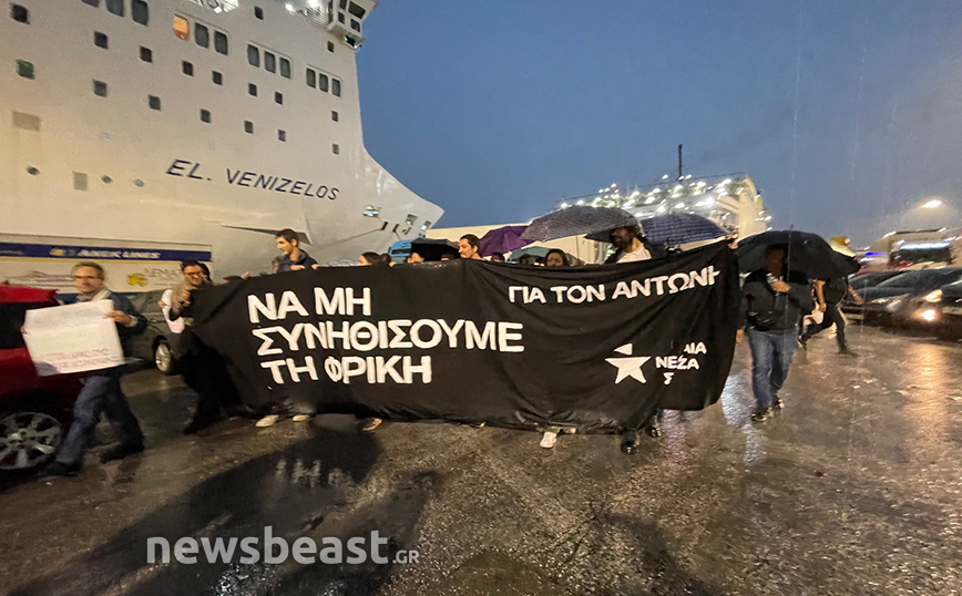 Συγκέντρωση διαμαρτυρίας πραγματοποιήθηκε έξω από την πύλη Έψιλον 3 στο λιμάνι του Πειραιά και συγκεκριμένα μπροστά από το πλοίο που έχασε τη ζωή του ο 36χρονος Αντώνης, καθώς έπεσε στη θάλασσα όσο τον έσπρωχναν μέλη του πληρώματος.