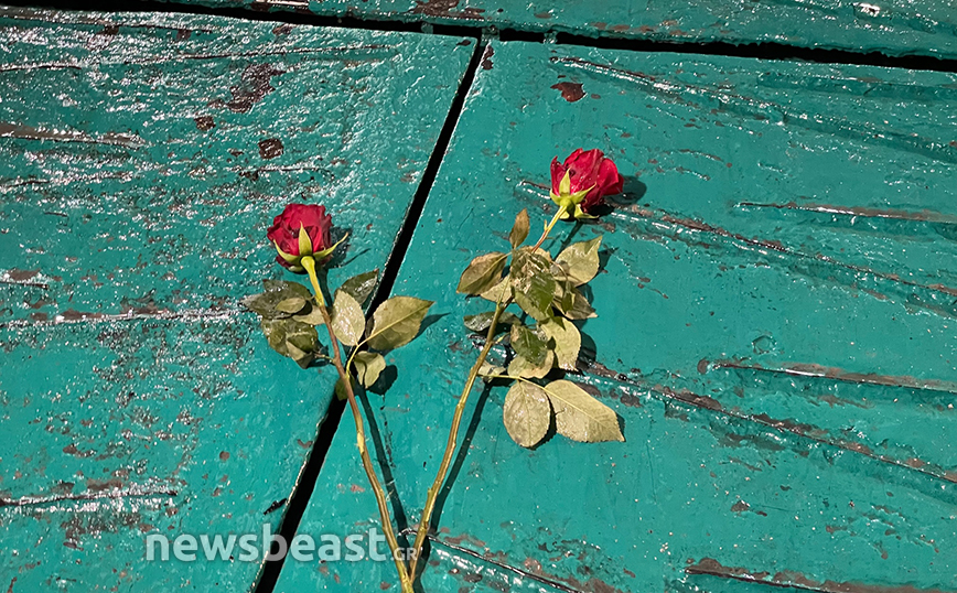 Οι παρευρισκόμενοι αψήφησαν την βροχή και κρατώντας ομπρέλες, διαμαρτυρήθηκαν για τον θάνατο του νέου.
