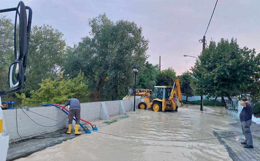 Σε εξέλιξη βρίσκεται νωρίς το πρωί της Παρασκευής επιχείρηση απομάκρυνση υδάτων, από παραποτάμιο δρόμο στη συνοικία των Αμπελοκήπων, στη Λάρισα.