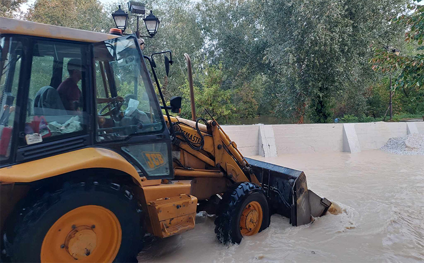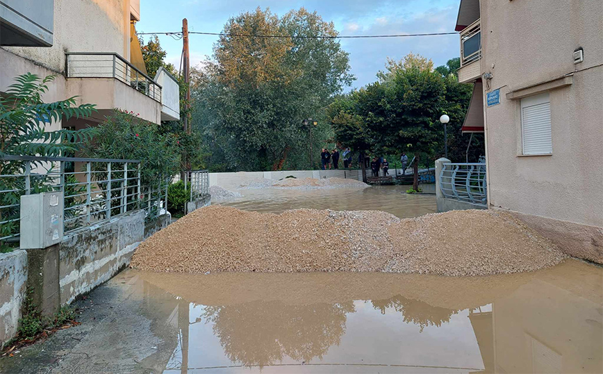 Ο λόγος για τη συμβολή των οδών Γκύζη και Εορδαίας, όπου στο σημείο βρίσκεται μεγάλος φορτωτής ο οποίος «επιστρέφει» τα νερά στην εσωτερική κοίτη του Πηνειού.