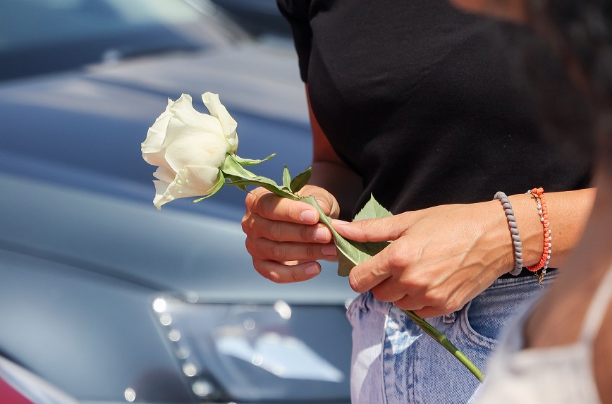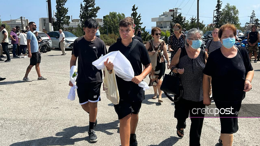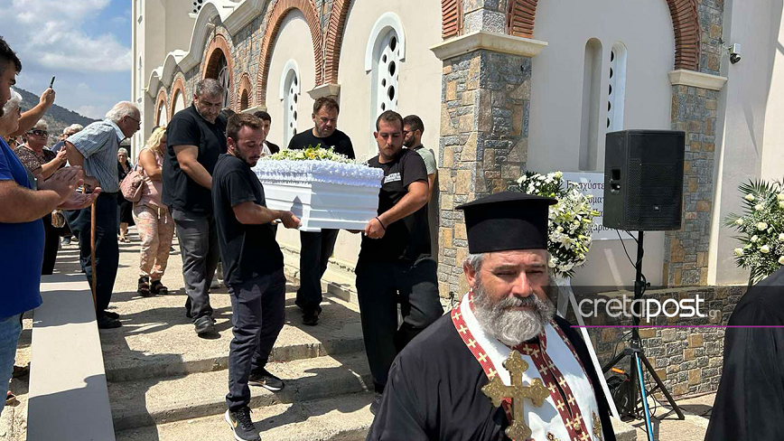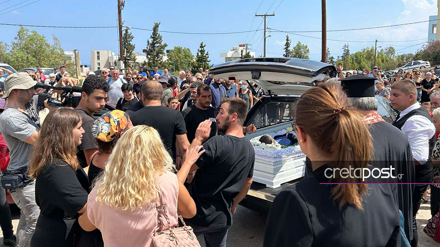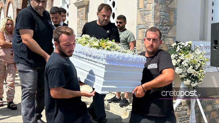 Η σορός του 36χρονου έφτασε, στις 11 περίπου το πρωί, σε λευκό φέρετρο στην εκκλησία όπου τον υποδέχθηκαν συγγενείς, φίλοι και πλήθος κόσμου, αναφέρει το cretapost.gr.