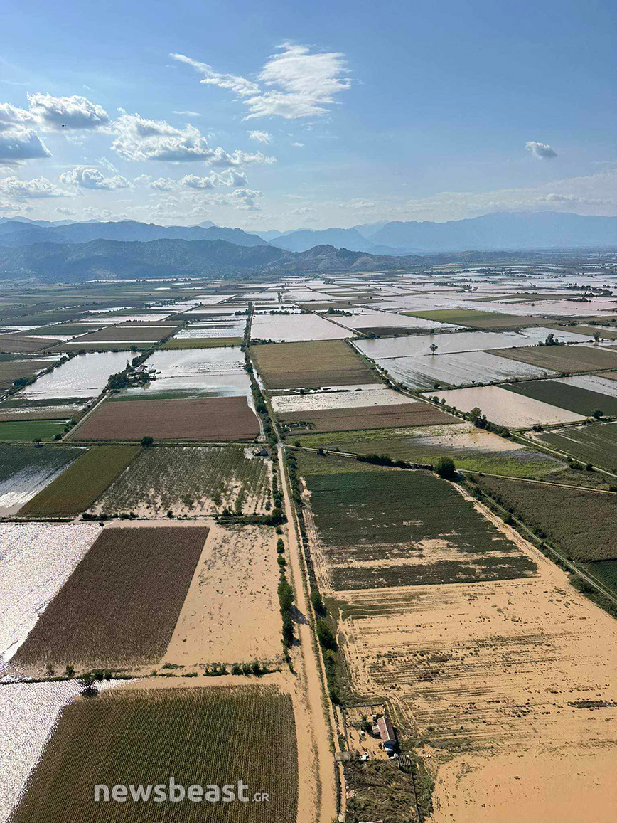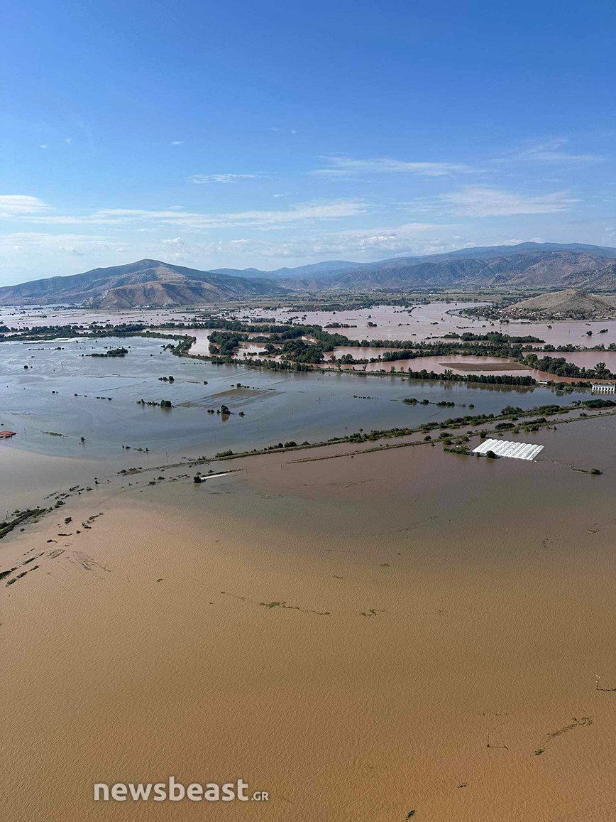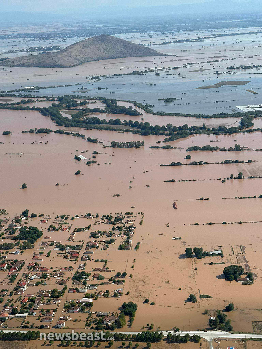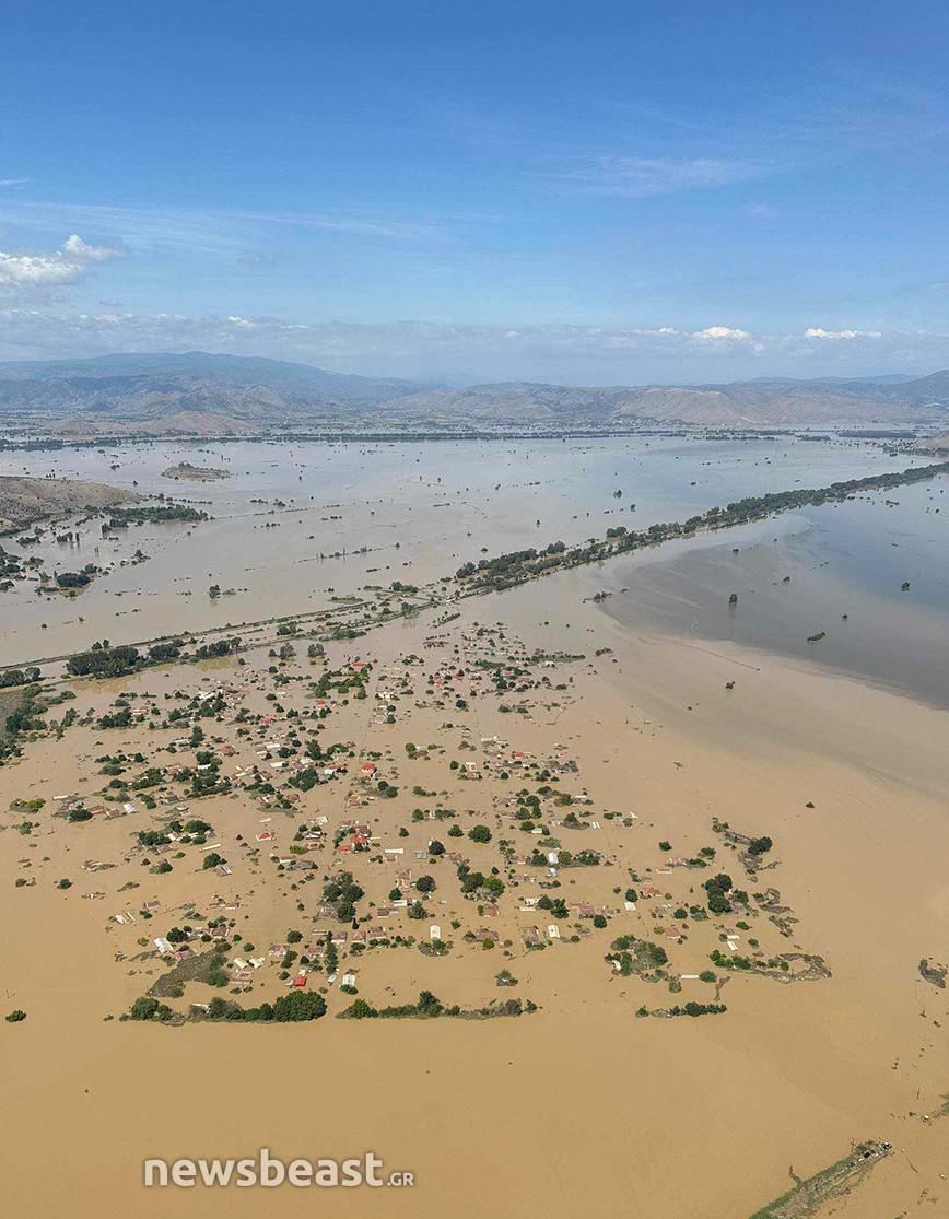 Δραματική ήταν η εικόνα που έδινε η Καρδίτσα και την Παρασκευή. Σε φωτογραφίες που εξασφάλισε το Newsbeast πάνω από τον κάμπο της περιοχής, το μόνο που φαίνεται είναι οι σκεπές των σπιτιών.