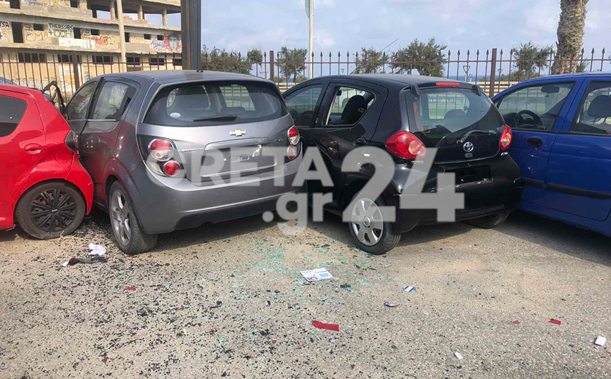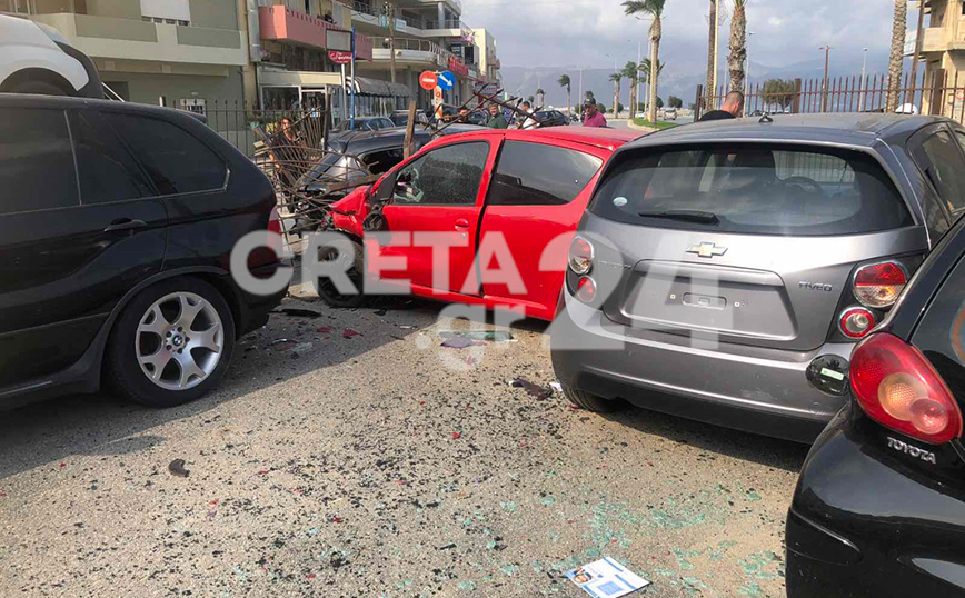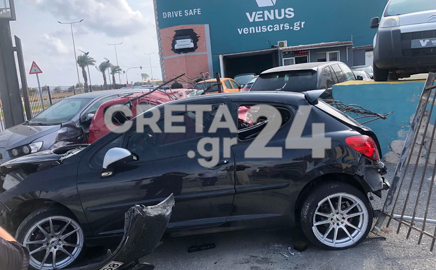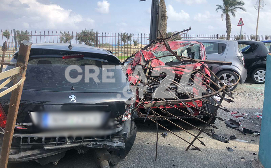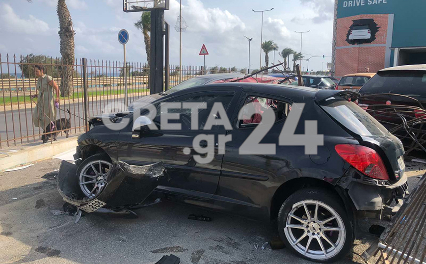 Στο βίντεο που δημοσιεύει το Creta24, φαίνεται το αυτοκίνητο που κινούνταν με ιλιγγιώδη ταχύτητα στην παραλιακή, να φεύγει από την πορεία του, να προσκρούσει στο κράσπεδο και στη συνέχεια να «απογειώνεται» και να πέφτει πάνω στα κάγκελα της μάντρας αυτοκινήτων.
