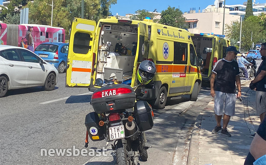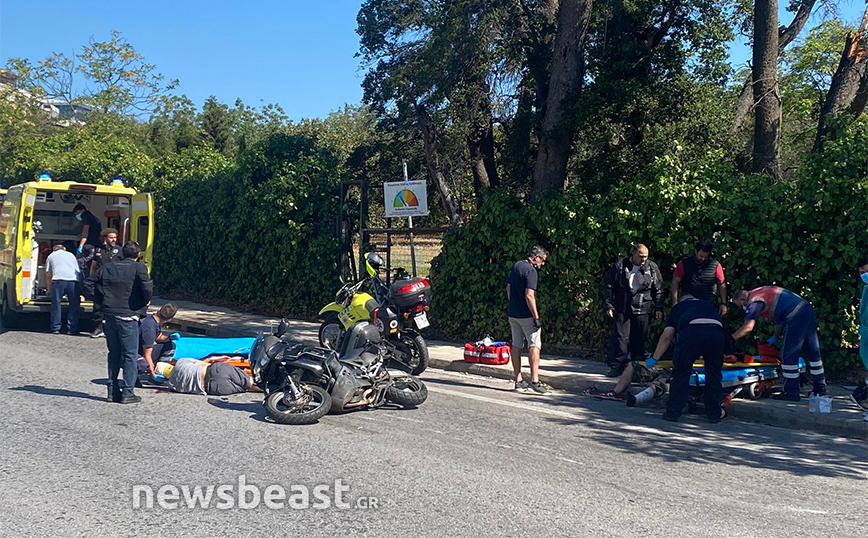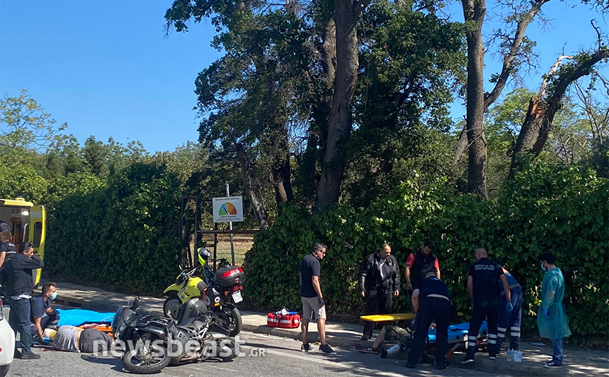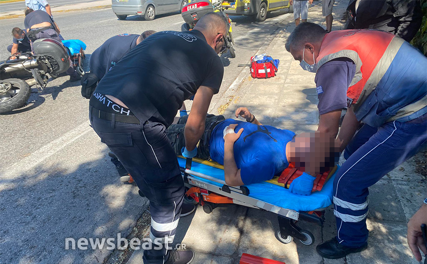 Οι τραυματίες είναι συνολικά τρεις, μαζί με τον οδηγό της μηχανής, ο οποίος έχει τραυματιστεί πιο ελαφριά στο πόδι.