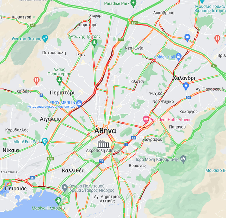 Τα μεγαλύτερα προβλήματα για τους οδηγούς εντοπίζονται στην κάθοδο της Εθνικής Οδού από τη Μεταμόρφωση μέχρι του Ρέντη και στην άνοδο από τα ΚΤΕΛ μέχρι το ύψος της Νέας Φιλαδέλφειας.