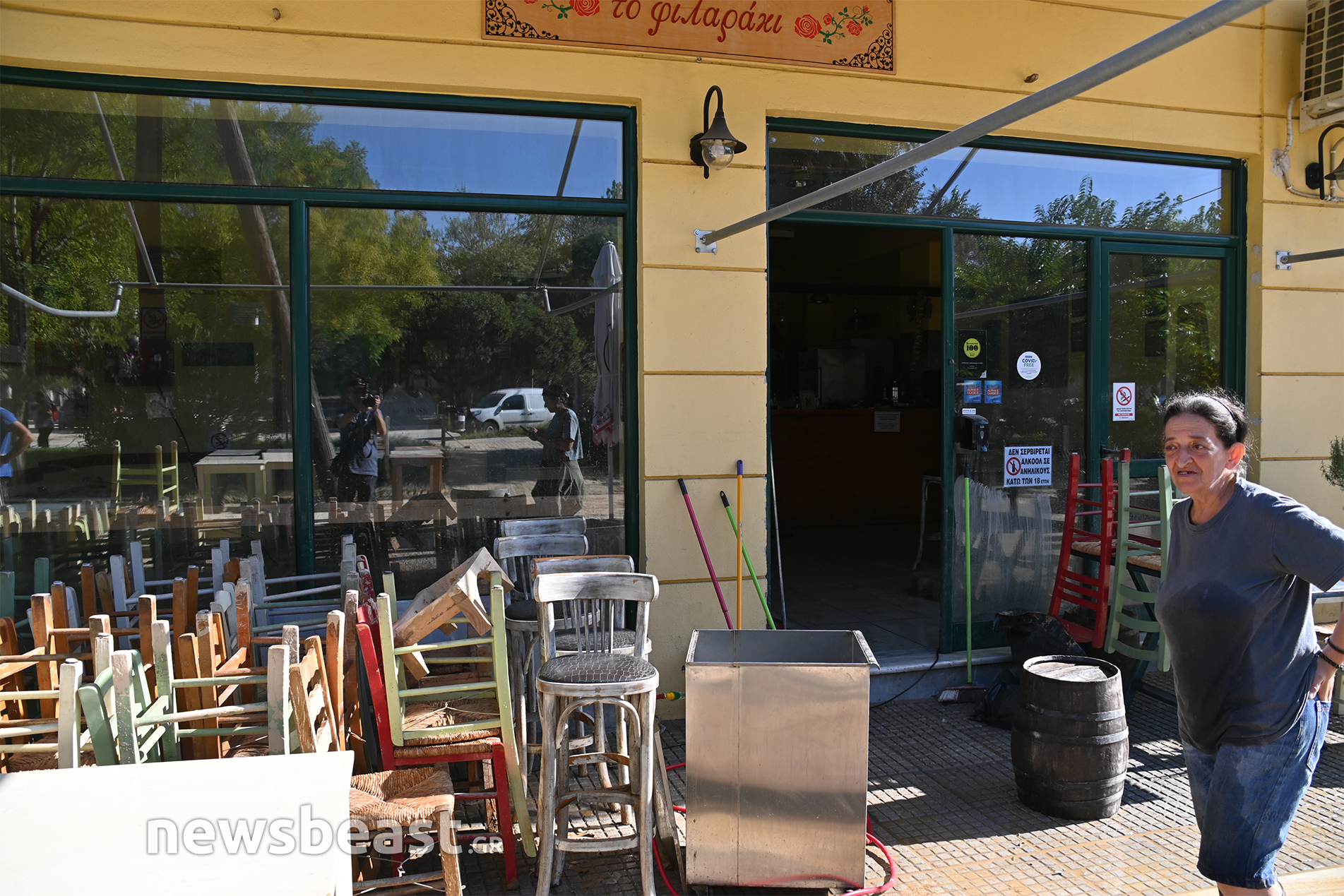 «Μόλις αλλάξαμε πλακάκια στο μαγαζί. Η κακοκαιρία ξήλωσε τα πάντα. Δείτε μέσα τι γίνεται» αναφέρει στο Newsbeast ο υπεύθυνος του «Cafe Panepistimio» και μας δείχνει το εσωτερικό του καταστήματος ενώ όλο το προσωπικό που έχει να βοηθήσει πλένει τις καρέκλες, τα τραπέζια και τον δρόμο με πιεστικά μηχανήματα και λάστιχα.