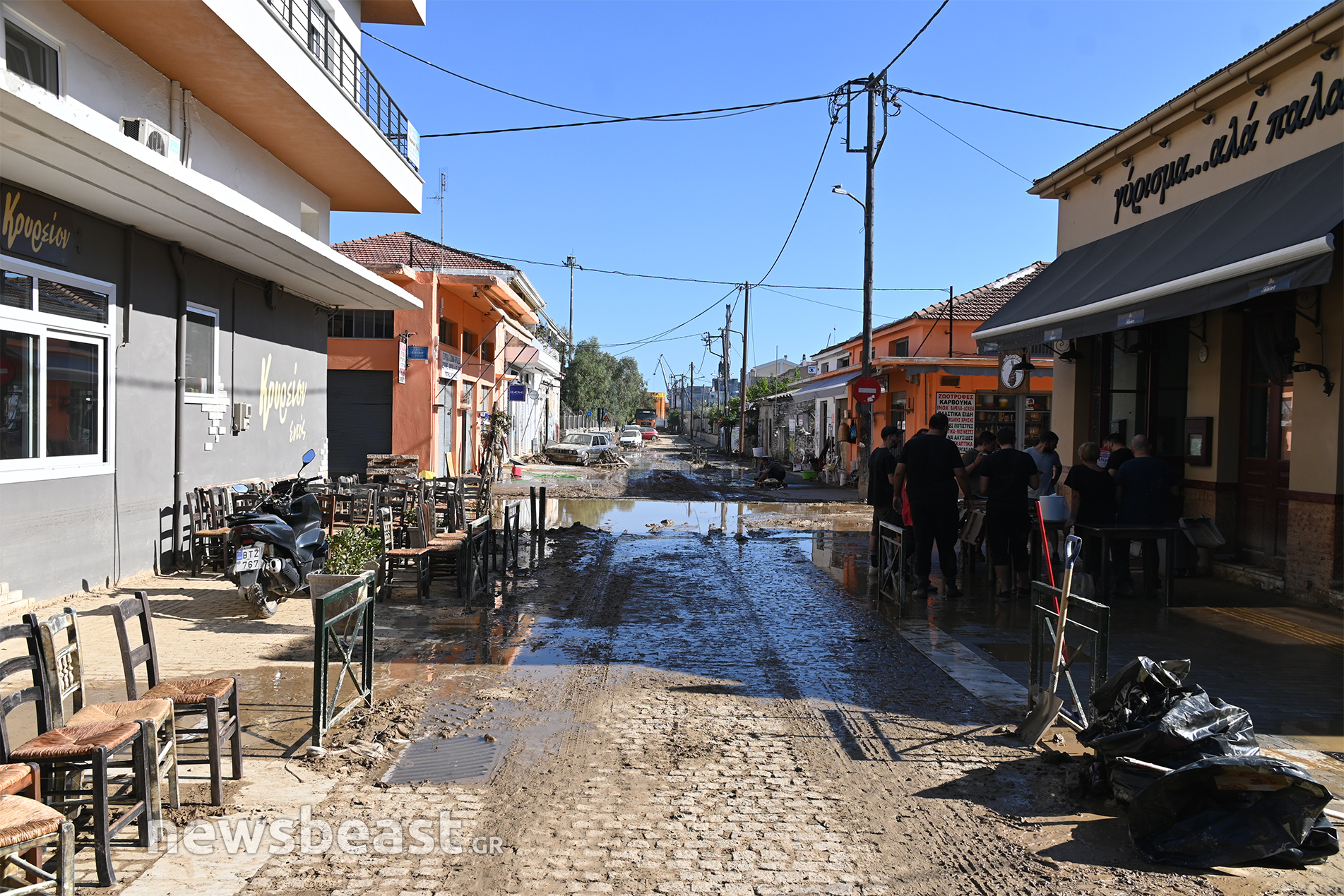 Η εικόνα που συναντήσαμε περπατώντας στην περιοχή του Βόλου «Παλαιά» ήταν αποκαρδιωτική. Καταστηματάρχες με δάκρυα στα μάτια και γαλότσες καθάριζαν με λάστιχα και σκούπες τα καταστήματά τους ενώ ολόκληρη η πόλη αν και πέρασε πάνω από μία εβδομάδα από την κακοκαιρία συνεχίζει να μοιάζει με μία απέραντη χωματερή.