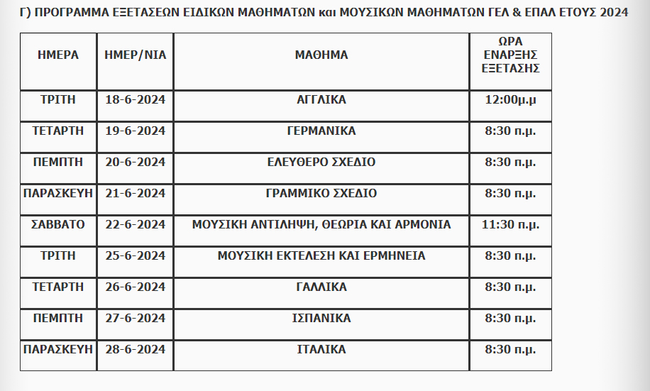 • για το μουσικό μάθημα «Μουσική Αντίληψη, Θεωρία και Αρμονία», η εξέταση συνολικά έχει διάρκεια τρεις (3) ώρες και 30΄ λεπτά.