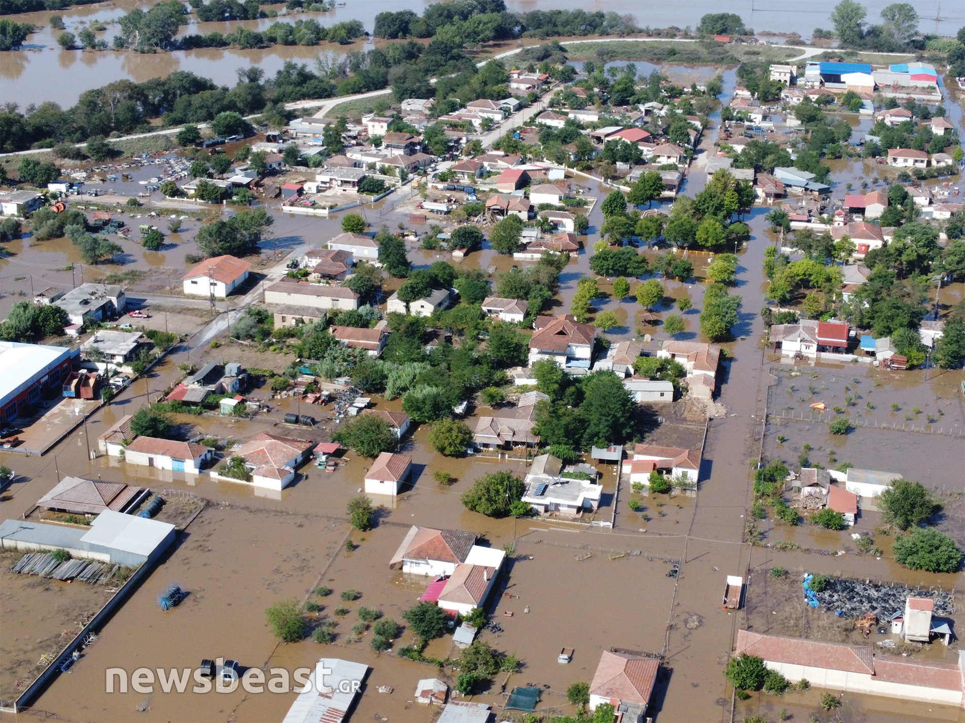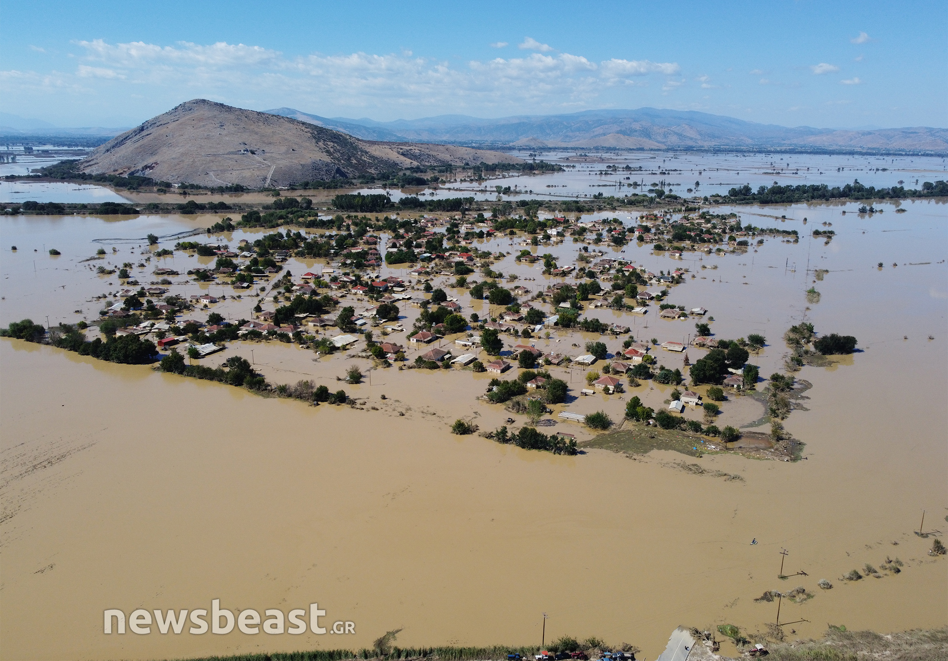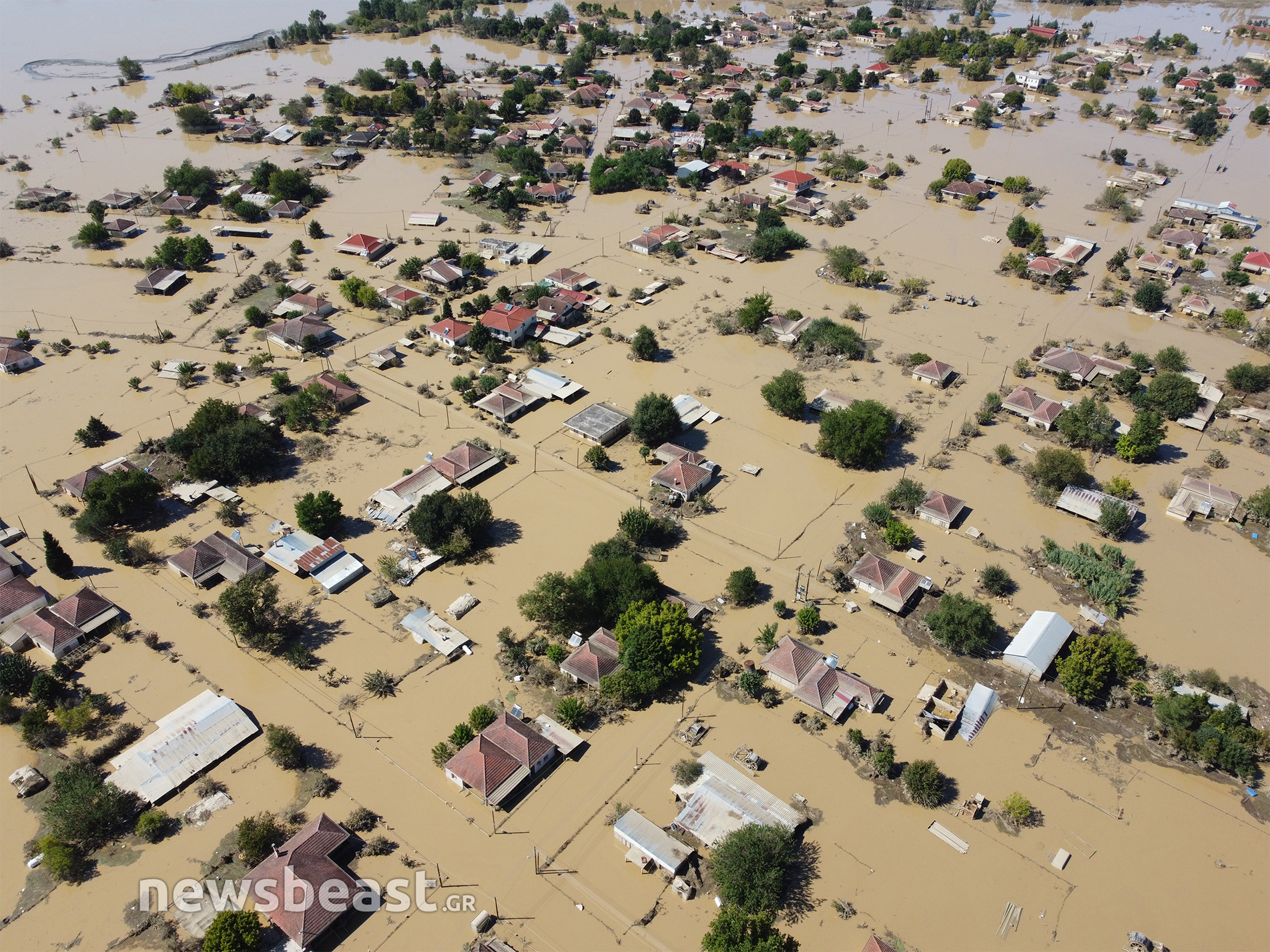 Ο οικισμός Μεταμόρφωση στην Καρδίτσα βυθίστηκε με τις σκεπές των σπιτιών να είναι το μόνο που φαίνεται από ψηλά ενώ οι εργατικές κατοικίες στη Γιάννουλη της Λάρισας έγιναν Βενετία.