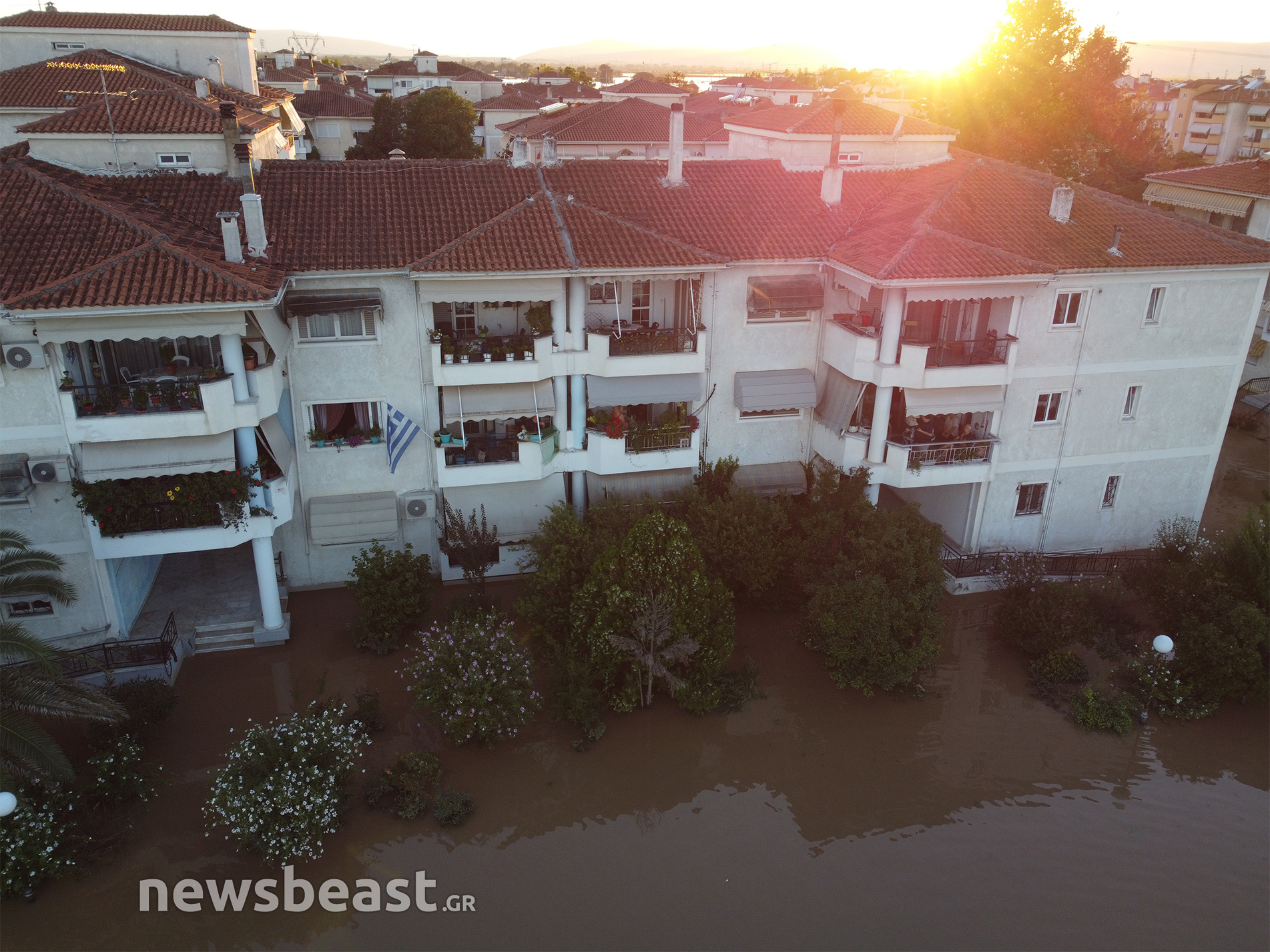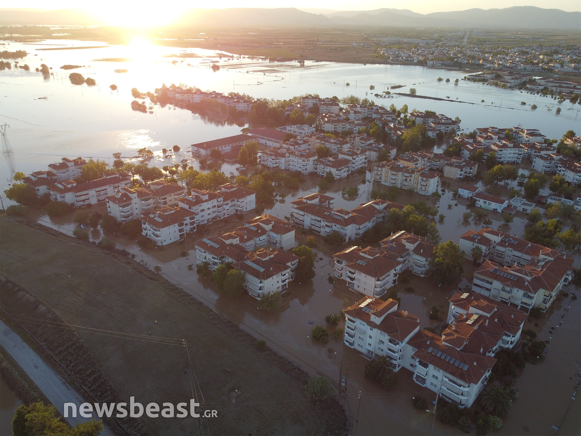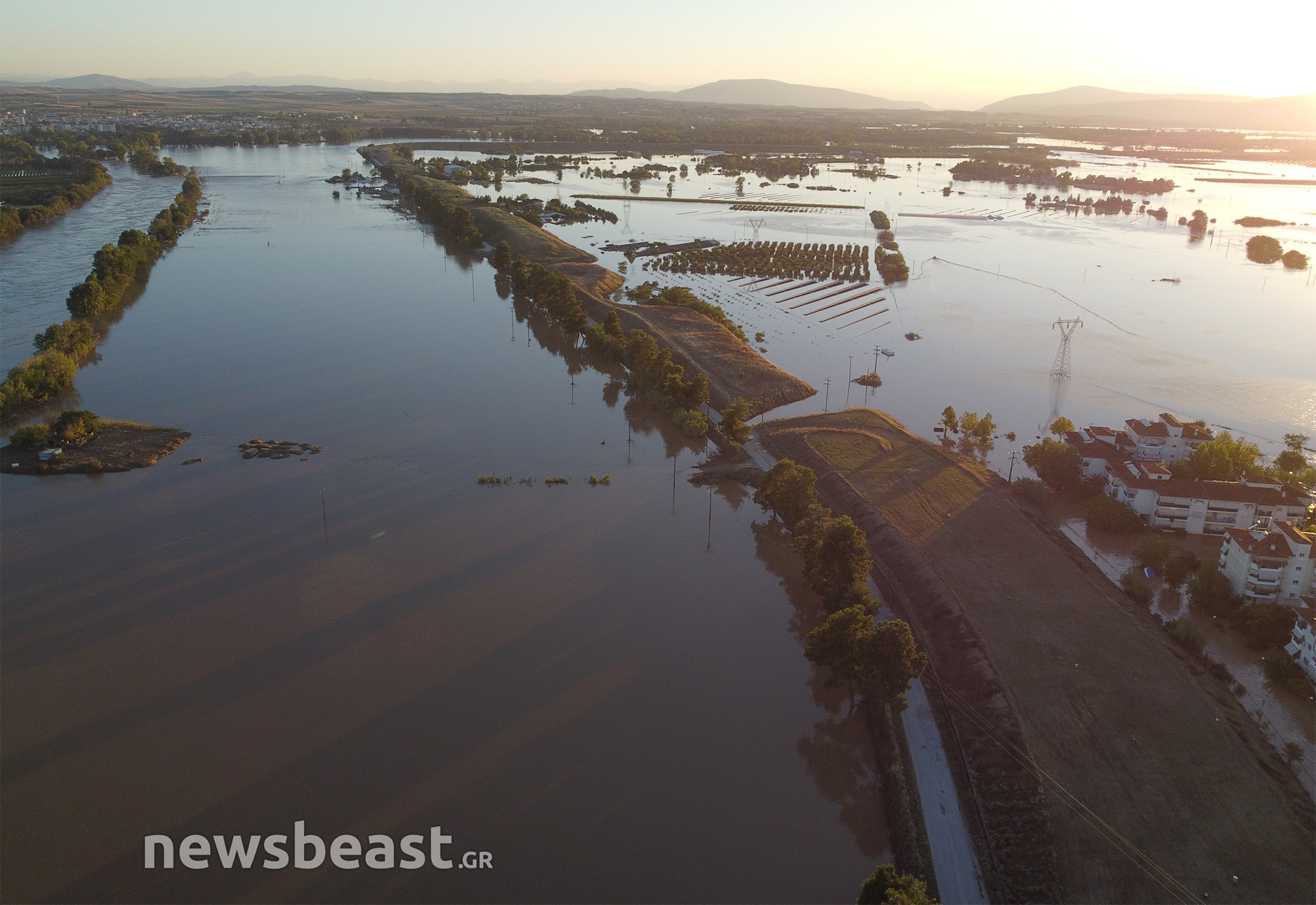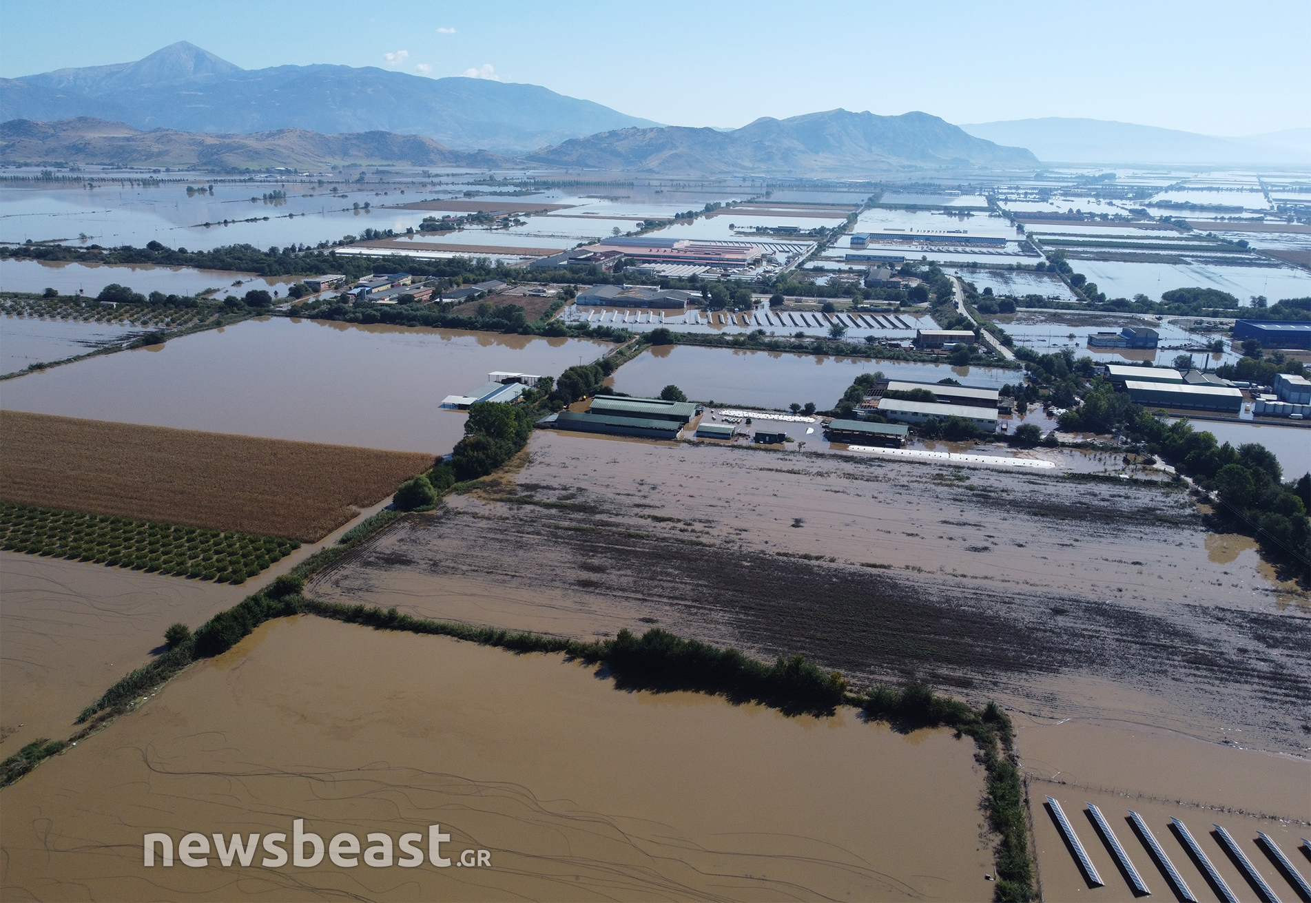 Ο οικισμός Μεταμόρφωση στην Καρδίτσα βυθίστηκε με τις σκεπές των σπιτιών να είναι το μόνο που φαίνεται από ψηλά ενώ οι εργατικές κατοικίες στη Γιάννουλη της Λάρισας έγιναν Βενετία.