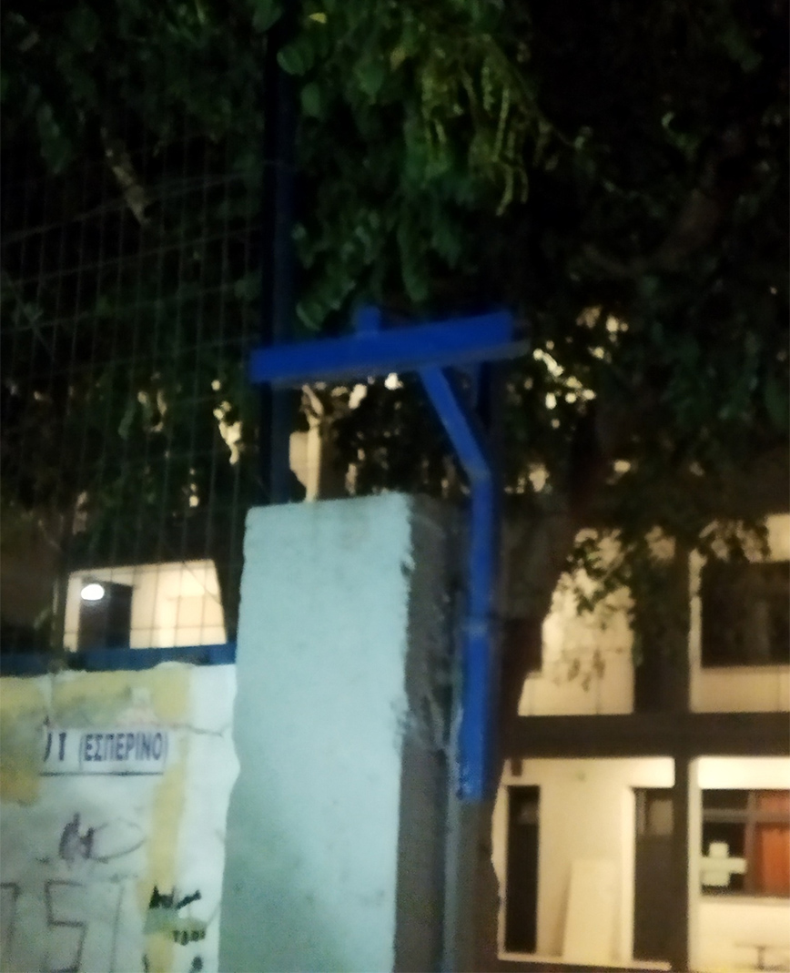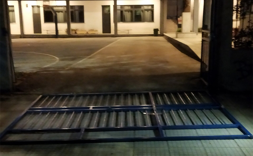 Χτες το βράδυ, γύρω στις 22:15, στην προσπάθειά μου να κλειδώσω την καγκελόπορτα και να ασφαλίσω το σχολείο, βίωσα ένα ισχυρό σοκ. Οι άλλοι συνάδελφοι μόλις είχαν φύγει κι εγώ έμεινα πιο πίσω, να τακτοποιήσω ένα διοικητικό θέμα. Τελειώνοντας, κλείδωσα το γραφείο, έβαλα τα πράγματά μου στο αυτοκίνητο, το οποίο, ευτυχώς, ανέβασα στο πεζοδρόμιο με την όπισθεν προς την είσοδο του σχολείου, και κατέβηκα να κλειδώσω. Η εξωτερική πόρτα, συρόμενη με δύο ρόδες που κυλούν πάνω σε μία ράγα, δεν μετακινούνταν εύκολα και, συνεπώς, δεν μπορούσα να την κλείσω και να την κλειδώσω. Έτσι, τηλεφώνησα σε έναν συνάδελφο που μένει κοντά στο σχολείο, να επιστρέψει, για να με βοηθήσει. Στην προσπάθεια να σύρουμε την πόρτα, ώστε να μπορέσουμε να την κλειδώσουμε, η πόρτα βγήκε από το σίδερο που τη συγκρατούσε στο πάνω μέρος της και έπεσε προς τον δρόμο, στο πεζοδρόμιο.