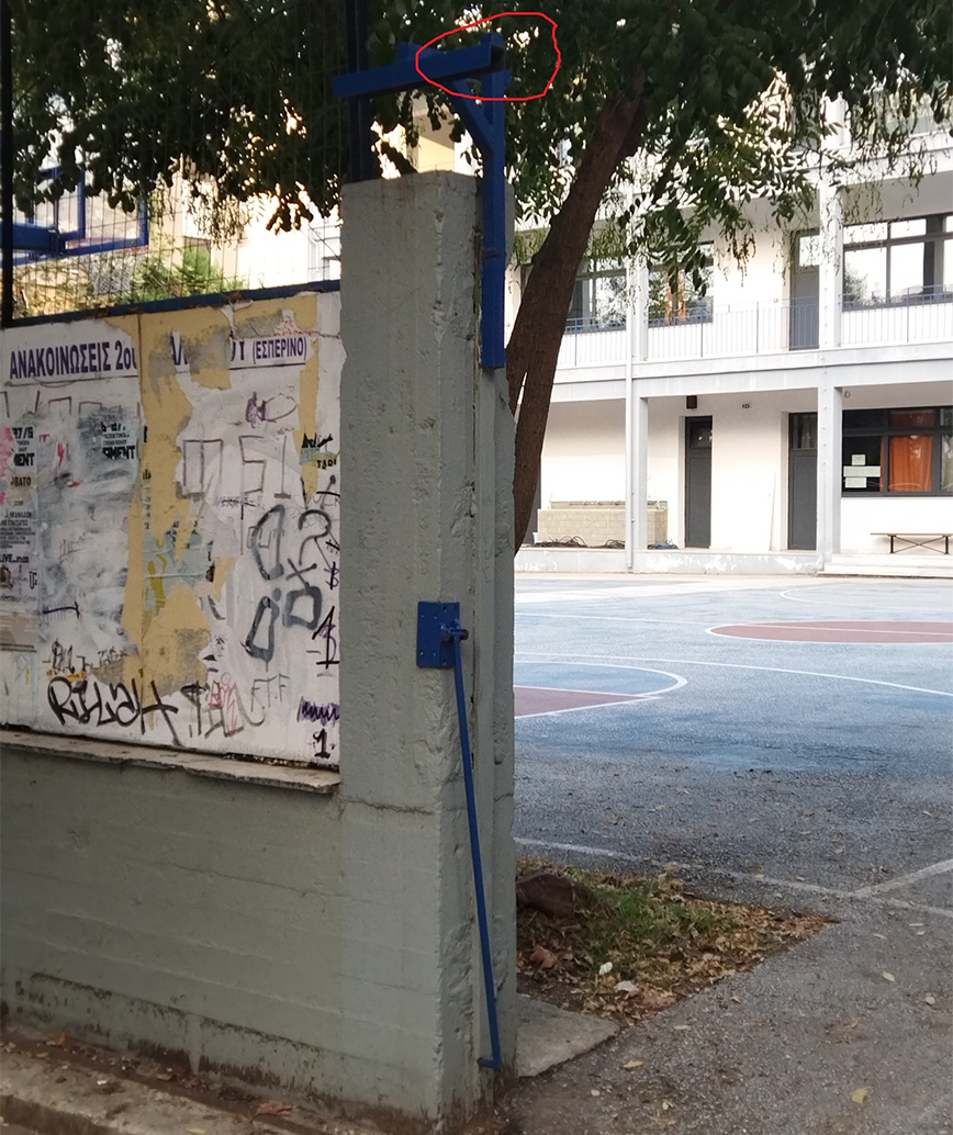 Τελικά, σκέφτομαι ότι πάλι καλά που συνέβη το γεγονός αυτό με αυτές τις συνθήκες σε μένα, γιατί θα μπορούσε να έχει συμβεί κάποιο ατύχημα σε βάρος μαθητών/-τριών ή περαστικών και να είναι πιο σοβαρές οι συνέπειες. Γιατί, έτσι όπως στηριζόταν η συγκεκριμένη πόρτα χωρίς ασφάλεια (δείτε στη φωτογραφία το σίδερο στο πάνω μέρος), θα μπορούσαμε να θρηνήσουμε θύματα. Ευχαριστώ θερμά τον νεαρό και την κοπέλα που περνούσαν εκείνη την ώρα και έτρεξαν να μας βοηθήσουν.