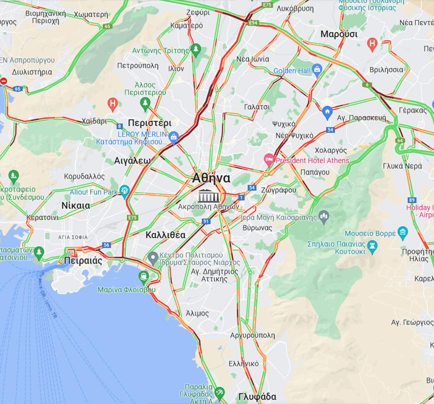 Στον Κηφισό μεγάλη συμφόρηση παρατηρείται στην κάθοδο από το ύψος της Μεταμόρφωσης σχεδόν μέχρι την παραλιακή ενώ καλύτερη είναι η κατάσταση στην άνοδο.