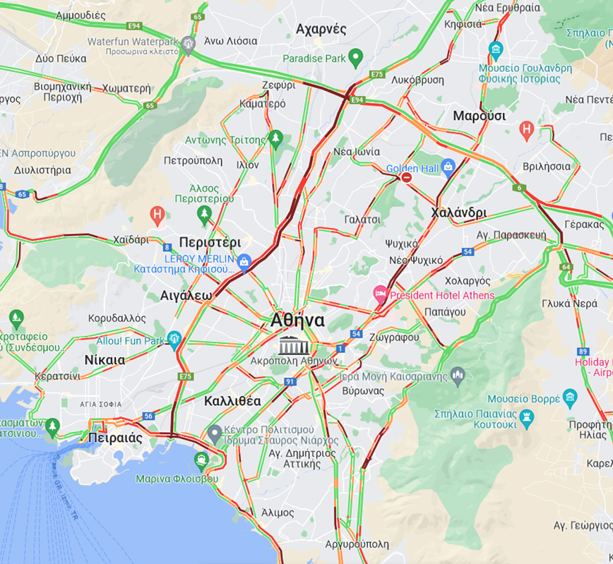 Χαρακτηριστικός είναι ο χάρτης με την κίνηση τώρα στους δρόμους, όπου πολλά σημεία του οδικού δικτύου είναι «κόκκινα»…