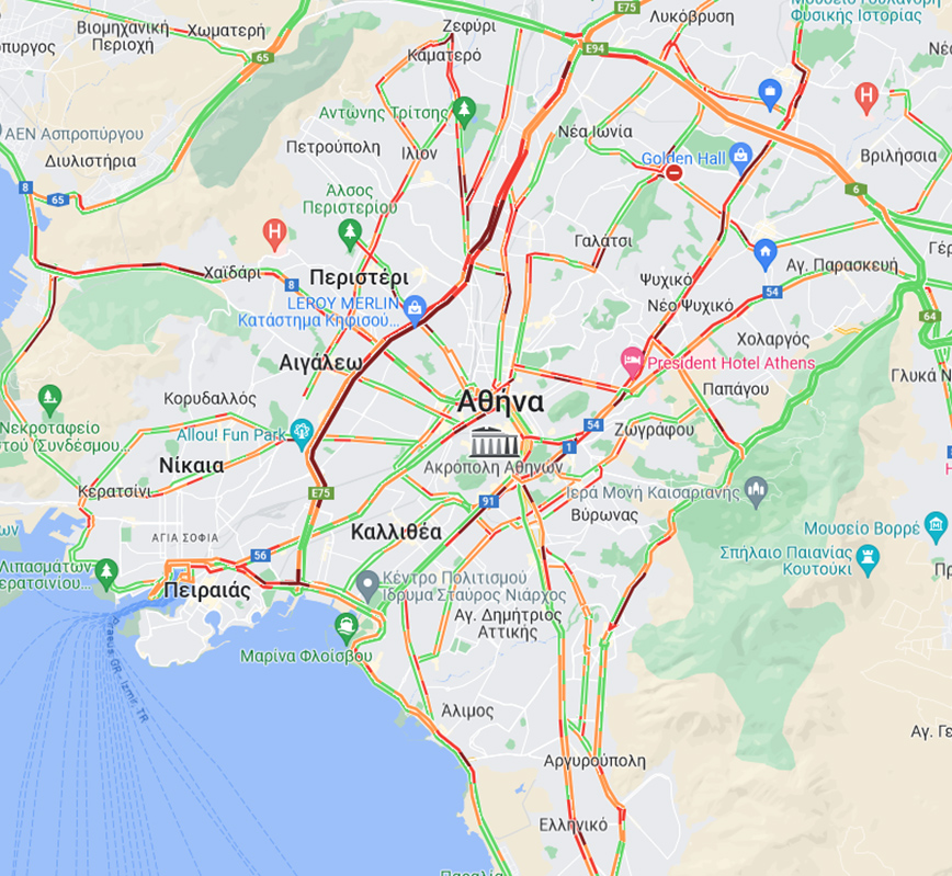 Σύμφωνα με την Τροχαία Αττικής, προβλήματα υπάρχουν στα εξής σημεία: