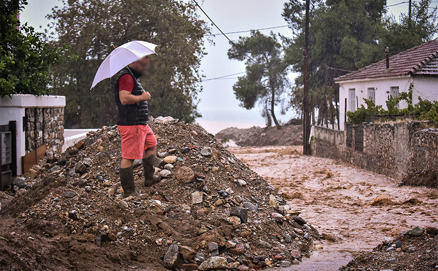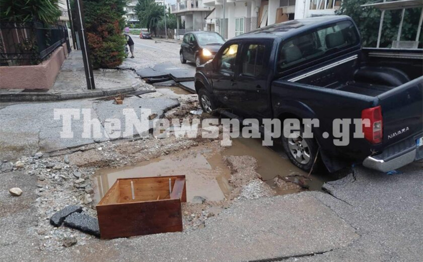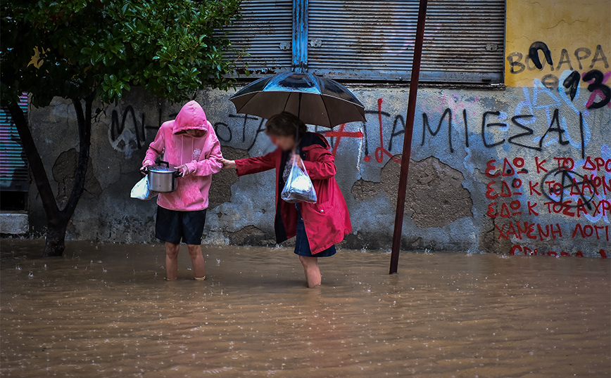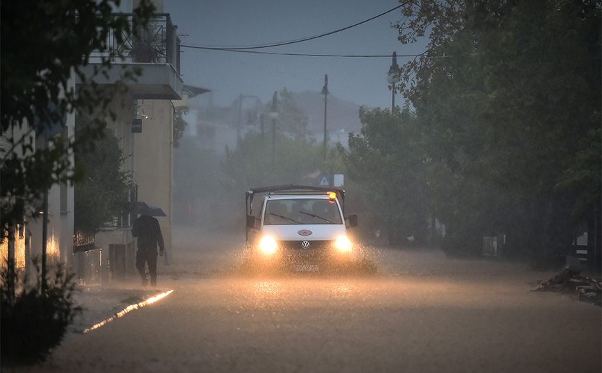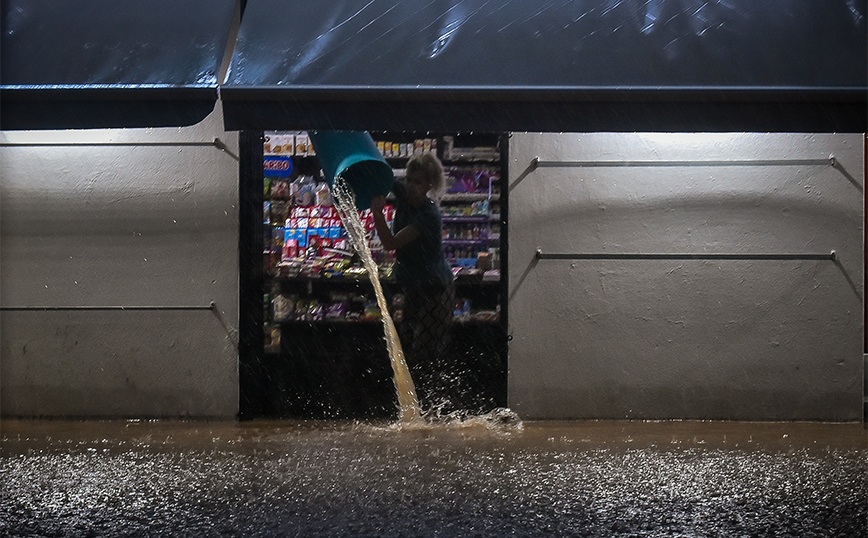 Οι δρόμοι είχαν μετατραπεί σε χειμάρρους και το νερό σε πολλές περιπτώσεις ξεπερνά και τα 50 εκατοστά.