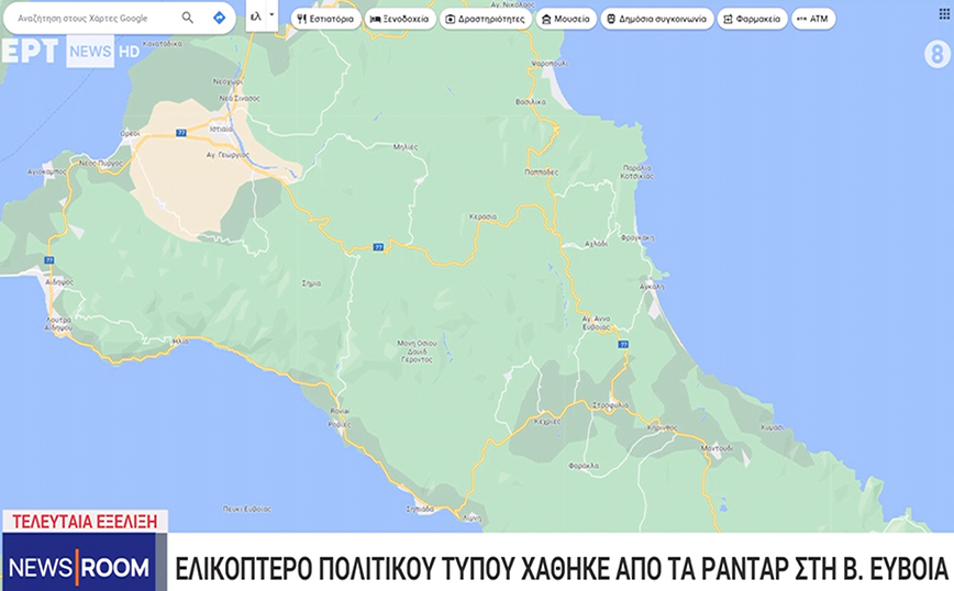 Για πτώση ελικοπτέρου στην παραλία Αχλαδίου στη Βόρεια Εύβοια, η οποία πλήττεται από την κακοκαιρία Elias, κάνουν λόγο πληροφορίες του evima.gr. H ΕΡΤ μετέδωσε αρχικά ότι το ελικόπτερο πολιτικού τύπου χάθηκε από τα ραντάρ της υπηρεσίας Πολιτικής Αεροπορίας. Στη συνέχεια μετέδωσε την πληροφορίες πως το ελικόπτερο κατέπεσε στη θάλασσα και ήδη έχει απογειωθεί ένα Super Puma.