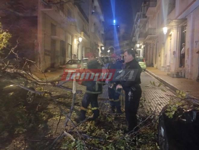 Στην Πάτρα μία γυναίκα τραυματίστηκε έπειτα από πτώση δέντρου. Της παρασχέθηκαν οι πρώτες βοήθειες από ασθενοφόρο του ΕΚΑΒ και στη συνέχεια μεταφέρθηκε σε τοπικό νοσοκομείο. Σύμφωνα με τις πληροφορίες δεν τραυματίστηκε σοβαρά.