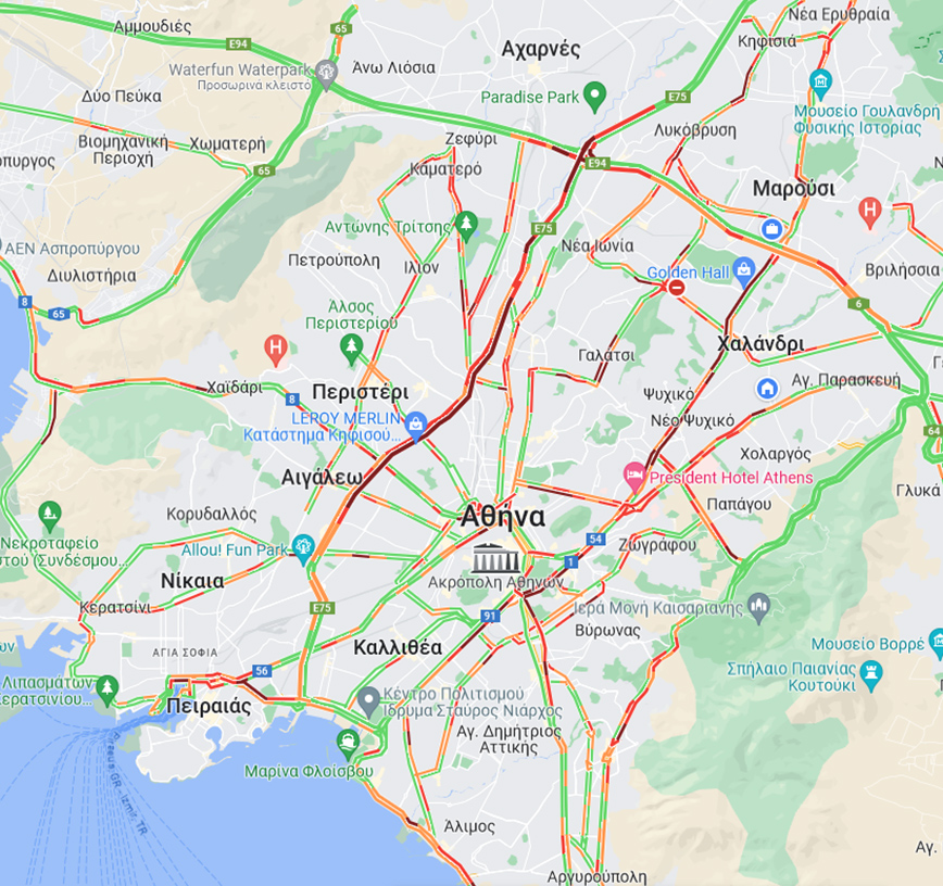 Σημειώνεται πως και σήμερα το πρωί, ο Κηφισός είναι μποτιλιαρισμένος. Η κίνηση τώρα στους δρόμους της Αθήνας…