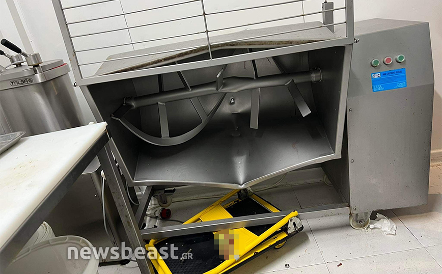Διευκρινίζοντας ότι δεν πρόκειται για κρεατομηχανή αλλά για ζυμωτήριο ο Γιάννης Τσικνιάς που έφτασε στο κατάστημα τα πρώτα λεπτά της τραγωδίας μας εξηγεί: «Είναι ένα ζυμωτήριο, ένας αναδευτήρας κρεάτων χωρίς λεπίδες».