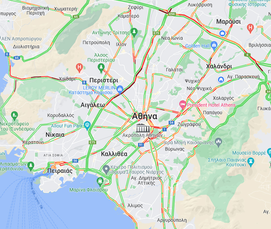 Δείτε τον χάρτη με την κίνηση τώρα στους δρόμους…