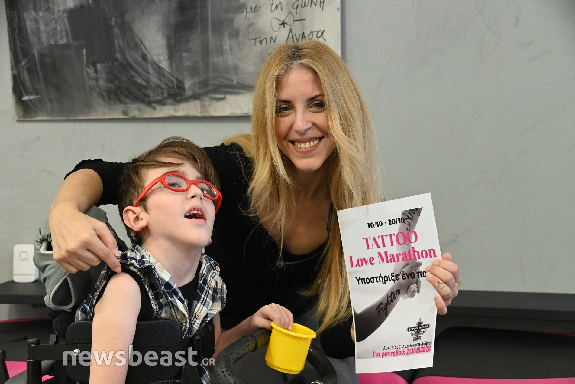 Ο μαραθώνιος αγάπης για τον μικρό Άγγελο θα πραγματοποιηθεί στο tattoo studio «Scripta Manent» που διατηρούν οι γονείς του στην οδό Αρκαδίας 2 στους Αμπελόκηπους από τις 10 έως τις 20 Οκτωβρίου.