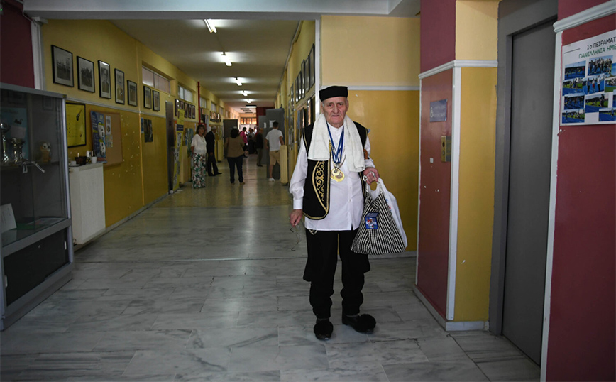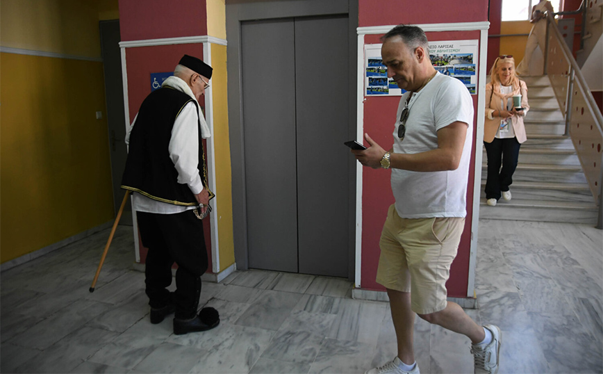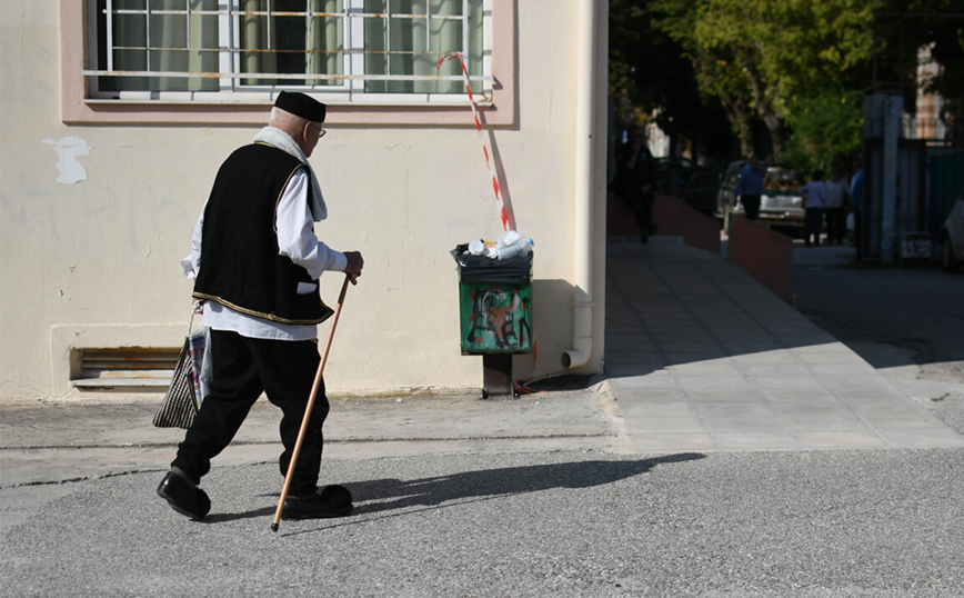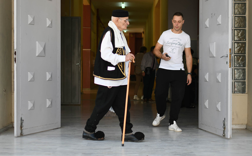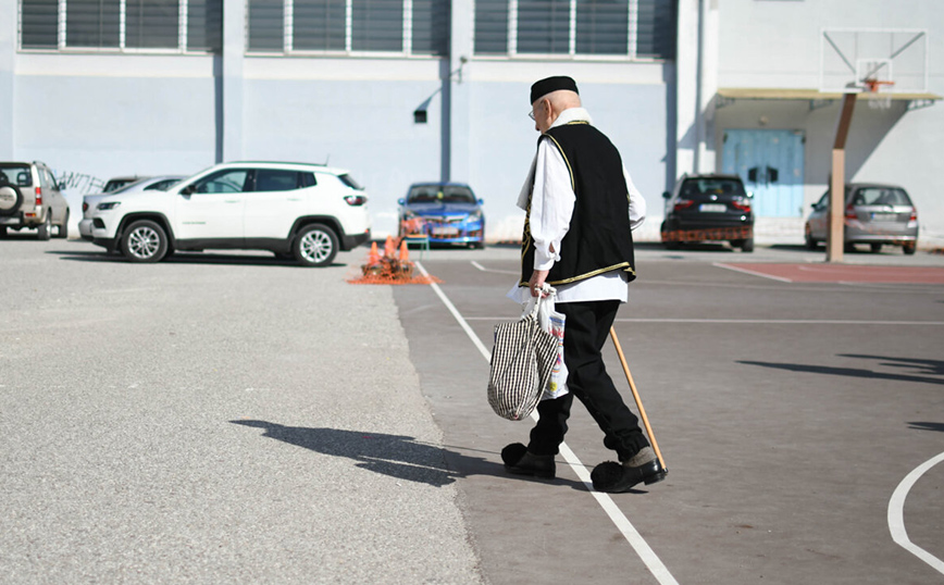 Τα βλέμματα κέρδισε ένας ηλικιωμένος το πρωί της Κυριακής στη Λάρισα, ο οποίος προσήλθε να ψηφίσει φορώντας τσαρούχια, ενώ είχε στα χέρια του είχε μια γκλίτσα.
