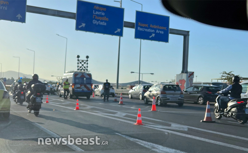 Η κίνηση στο σημείο είναι ιδιαίτερα αυξημένη, καθώς είναι ανοιχτή μόνο η δεξιά λωρίδα.