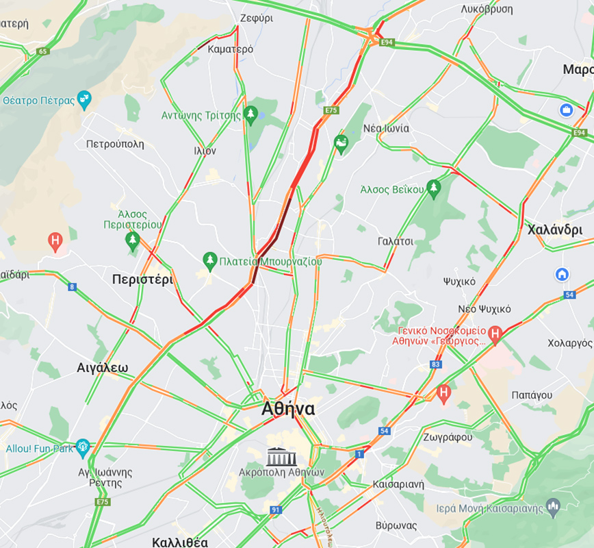 Ο χάρτης με την κίνηση τώρα στους δρόμους…