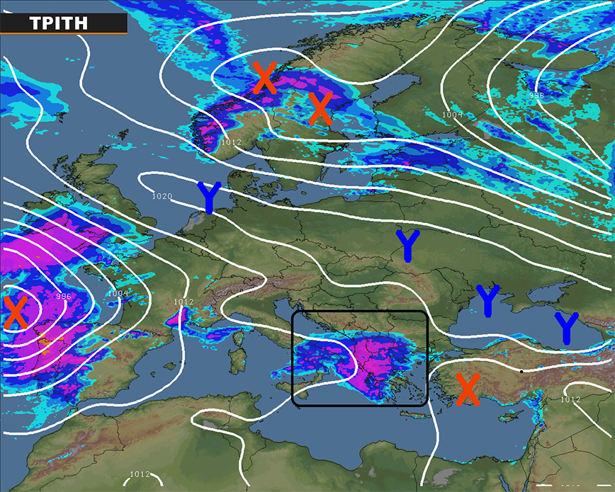 Αιτία γι’ αυτή την εξέλιξη είναι η διαταραχή που εντοπίζουμε στο πλαίσιο του χάρτη που ακολουθεί και η οποία από τα βορειοδυτικά Βαλκάνια θα ωθήσει ψυχρότερο αέρα προς την περιοχή μας και ο οποίος καθώς θα αλληλεπιδράσει με την τοπογραφία που θα συναντήσει αλλά και με θερμότερο αέρα που ήδη υπάρχει στα μέρη μας, θα δημιουργήσει αυτό το κύμα κακοκαιρίας που αν και δείχνει να κινείται γρήγορα, είναι ικανό να προκαλέσει προβλήματα.