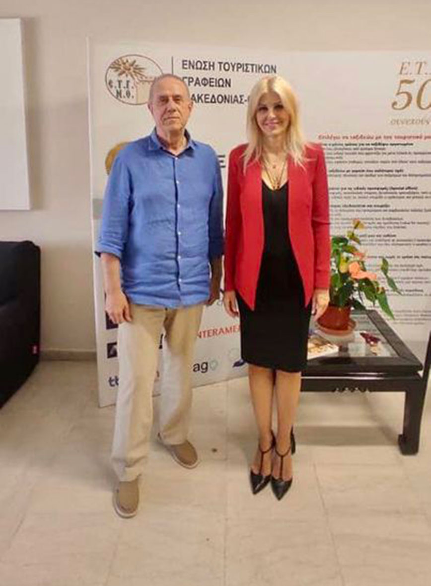 Η συνάντηση της Υφυπουργού Τουρισμού Έλενας Ράπτη με τον πρόεδρο της Ένωσης Τουριστικών Γραφείων Μακεδονίας-Θράκης (ΕΤΓΜΘ) Βύρωνα Θεολόγη, στην οποία παρευρέθηκαν και οι: Β’ αντιπρόεδρος Γιώργος Βόγιας, ταμίας Κωνσταντίνος Κουράκος και έφορος Ελένη Παρασκευοπούλου ήταν εξαιρετικά ενδιαφέρουσα και μοιράστηκαν παρατηρήσεις και προτάσεις για τον τουρισμό στη χώρα μας, με έμφαση στη Βόρεια Ελλάδα.