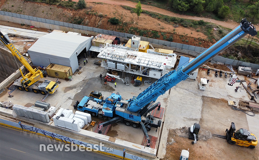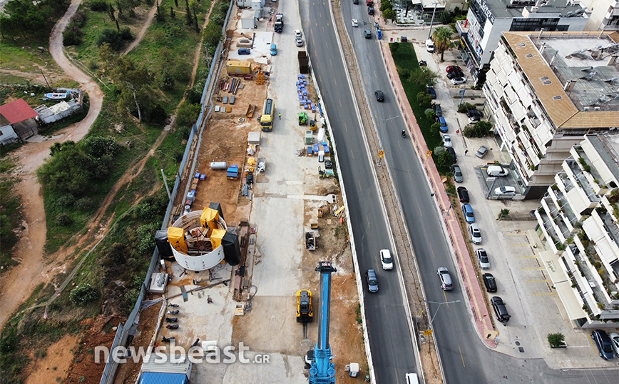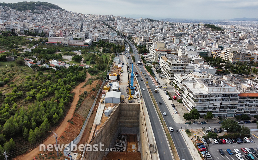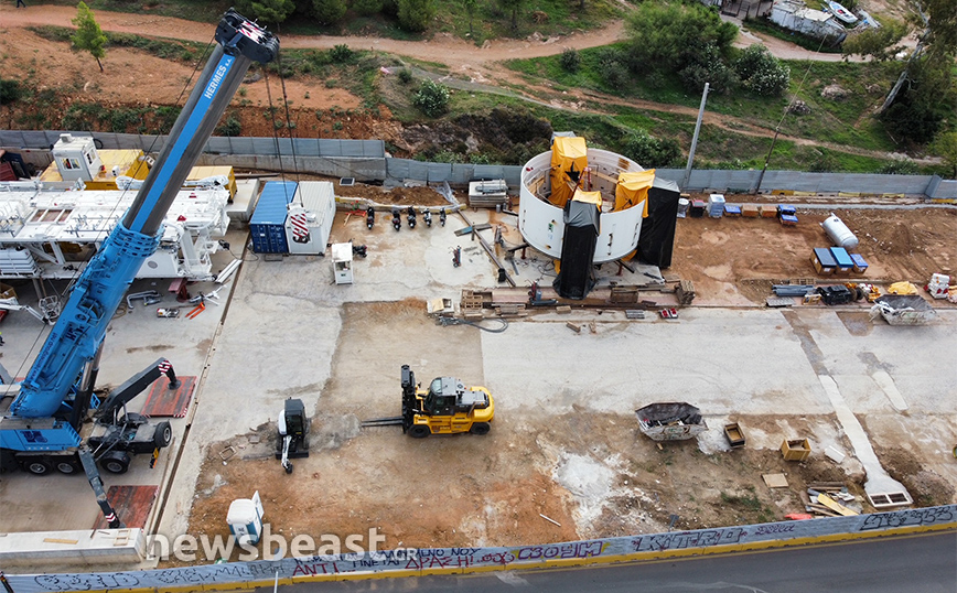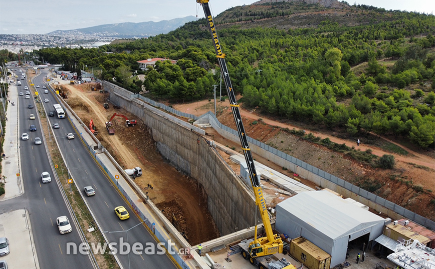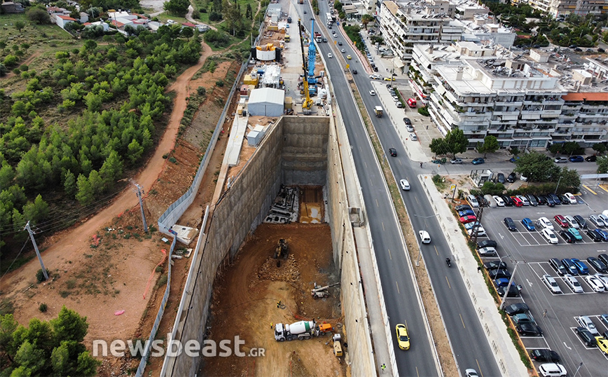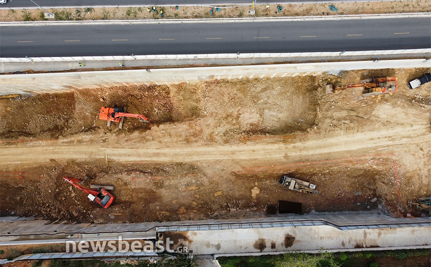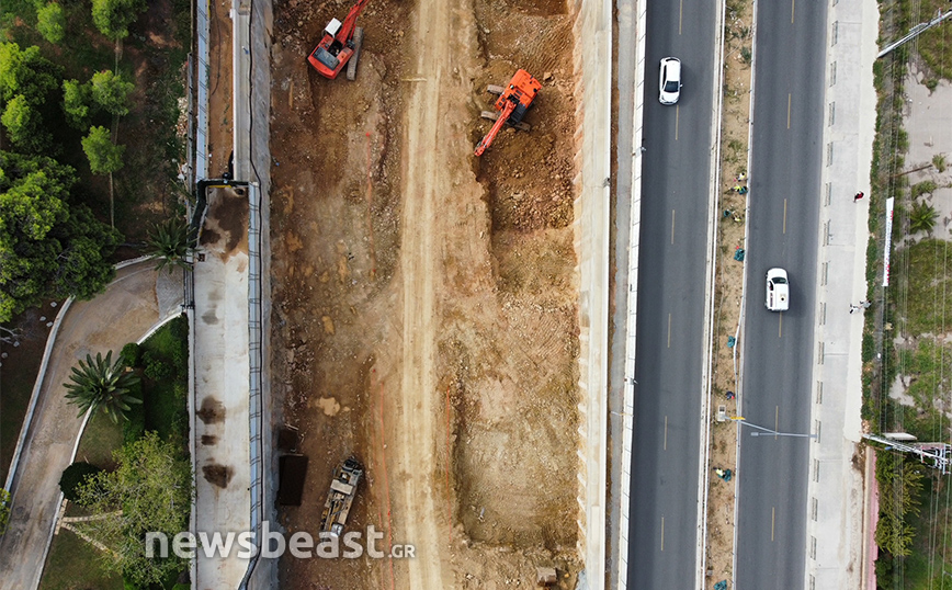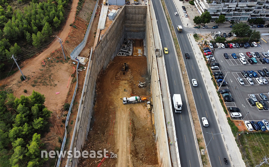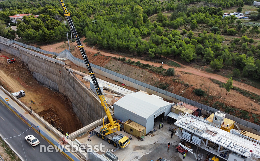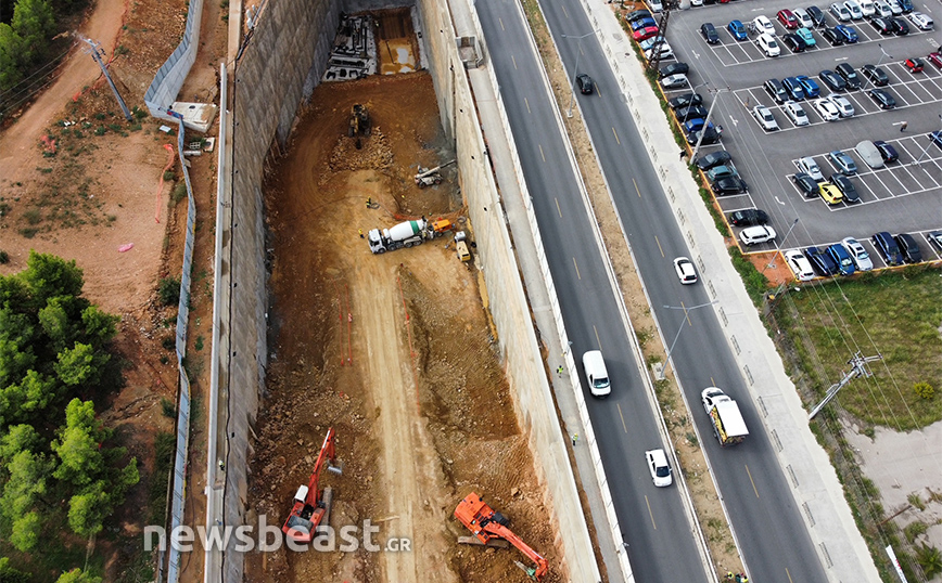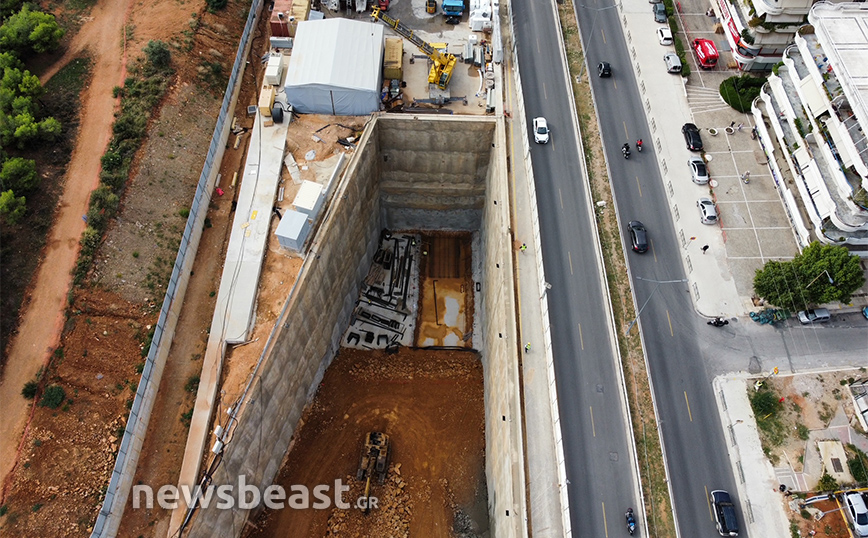 Οι φωτογραφίες που τράβηξε ο φακός του Newsbeast δείχνουν τη μεγάλη τρύπα που έχει διανυχτεί ώστε να προχωρήσει η υπογειοποίηση και να μεταφερθούν στο κάτω μέρος τα μηχανήματα.