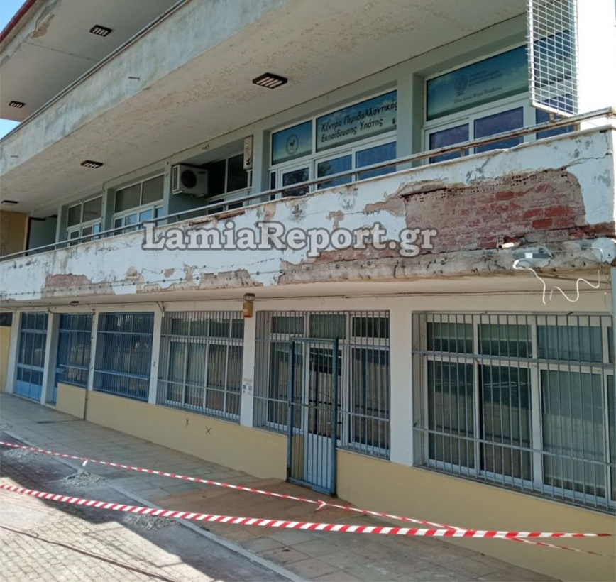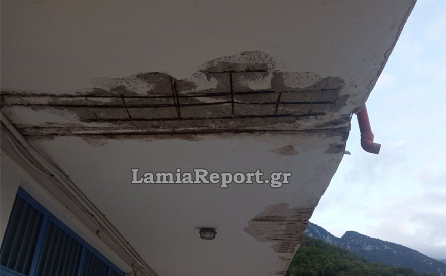 Όπως καταγγέλουν οι εκπαιδευτικοί, οι μαθητές και οι καθηγητές έρχονται καθημερινά αντιμέτωποι με κίνδυνο ατυχήματος, καθώς σοβάδες πέφτουν από το υπόστεγο στο προαύλιο του σχολείου.