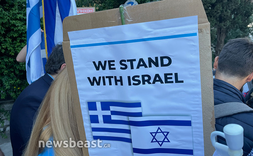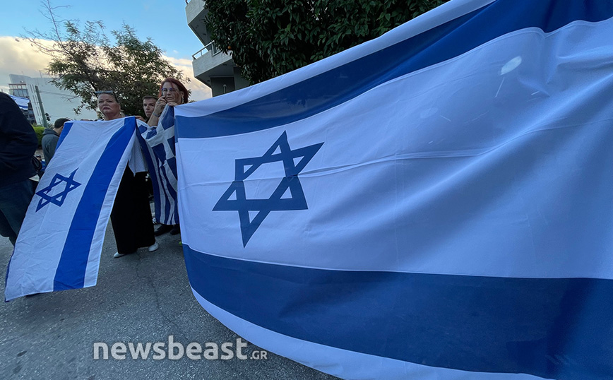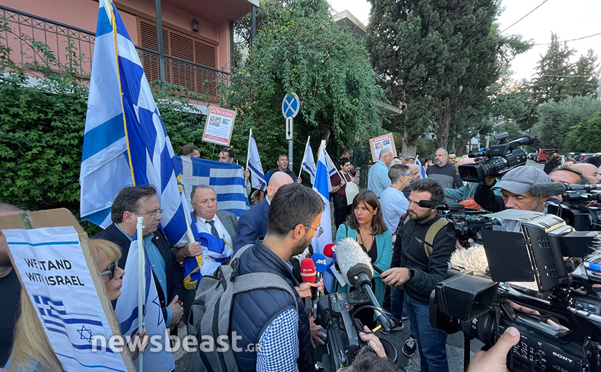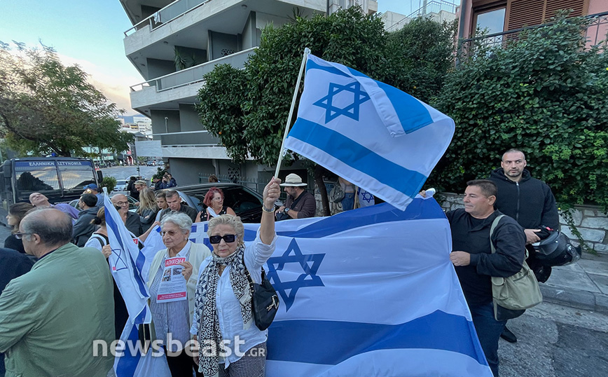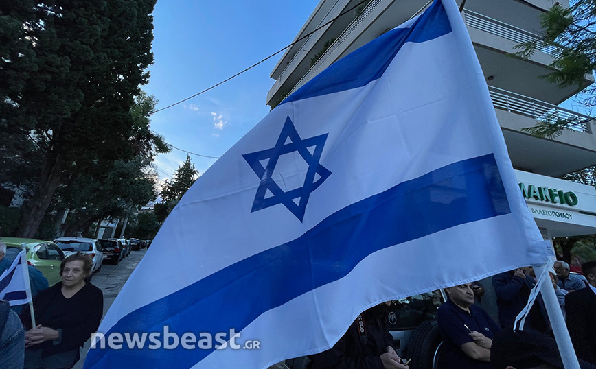 Στην ισραηλινή πρεσβεία πραγματοποιείται συγκέντρωση υπέρ του Ισραήλ, ύστερα από την επίθεση που εξαπέλυσε η Χαμάς, που είχε ως αποτέλεσμα να φουντώσει ξανά το Μεσανατολικό.