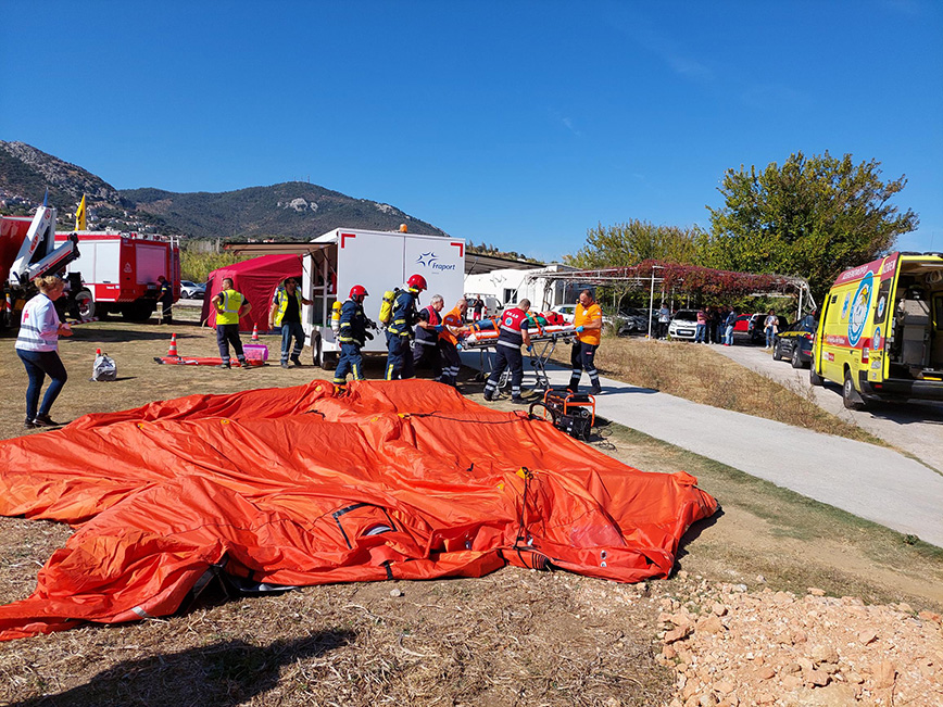 Στη διενέργεια της άσκησης και πέραν των στελεχών της Fraport Greece, συμμετείχαν, όλοι οι εμπλεκόμενοι, σε αυτές τις περιπτώσεις φορείς, και συγκεκριμένα, η Γενική Γραμματεία Πολιτικής Προστασίας (Γ.Γ.Π.Π.), η Ελληνική Αστυνομία (ΕΛ.ΑΣ), το Πυροσβεστικό Σώμα (Π.Σ.), το Εθνικό Κέντρο Άμεσης Βοήθειας (Ε.Κ.Α.Β), το Κέντρο Επιχειρήσεων Υγείας, η Ιατροδικαστική Υπηρεσία Μυτιλήνης, η Αυτοτελής Διεύθυνση Πολιτικής Προστασίας Περιφέρειας Βορείου Αιγαίου, η Αρχή Πολιτικής Αεροπορίας (Α.Π.Α) και εμπλεκόμενοι φορείς από το αεροδρόμιο, όπως o φορέας επίγειας εξυπηρέτησης και o Πάροχος Υπηρεσιών Ασφαλείας.