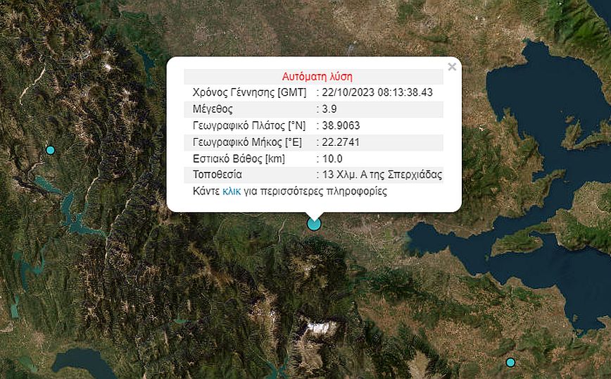 Σεισμική δόνηση μεγέθους 3,9 βαθμών της κλίμακας Ρίχτερ σημειώθηκε το πρωί της Κυριακής στη Λαμία, σύμφωνα με το Γεωδυναμικό Ινστιτούτο του Εθνικού Αστεροσκοπείου Αθηνών.