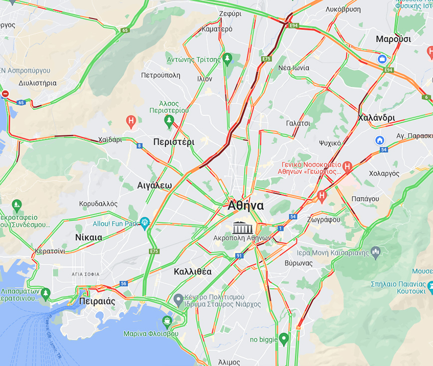 Αυξημένη είναι η κίνηση, επίσης σε Κηφισίας, Μεσογείων και Λεωφόρο Καρέα.