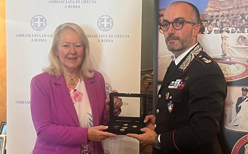 Το Σώμα των καραμπινιέρων, ειδικευμένο στην καταπολέμηση του παράνομου εμπορίου έργων τέχνης και αρχαιολογικής κληρονομίας, κατέσχεσε και επέστρεψε στην Ελλάδα, μέσω της πρέσβεως στην Ιταλία, Ελένης Σουρανή, πέντε αρχαιοελληνικά νομίσματα, τα οποία είχαν τεθεί προς πώληση στο διαδίκτυο έναντι 1.500 ευρώ. Σύμφωνα με πληροφορίες, ο ιδιώτης που κατείχε παράνομα τα νομίσματα δεν είχε αντιληφθεί την πραγματική αξία τους.