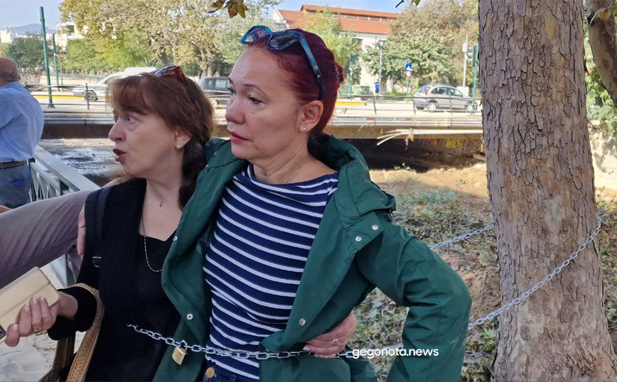 Αντί να καθαρίσουν τον Κραυσίνδωνα από τις τεράστιες ποσότητες φερτών υλών, «καθαρίζουν» τα δέντρα, κατήγγειλαν οι διαμαρτυρόμενοι πολίτες, που δέθηκαν με αλυσίδες γύρω από τα δέντρα για να τα γλιτώσουν από την καρατόμηση, ενώ στο σημείο μετέβη και η αστυνομία, σύμφωνα με το gegonota.news.
